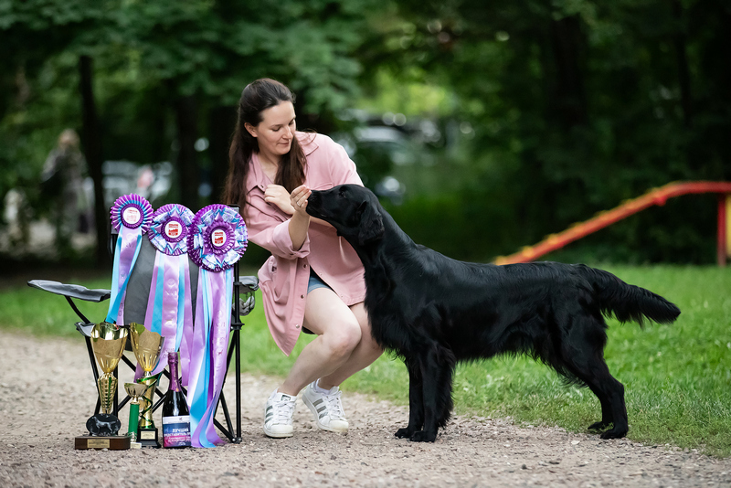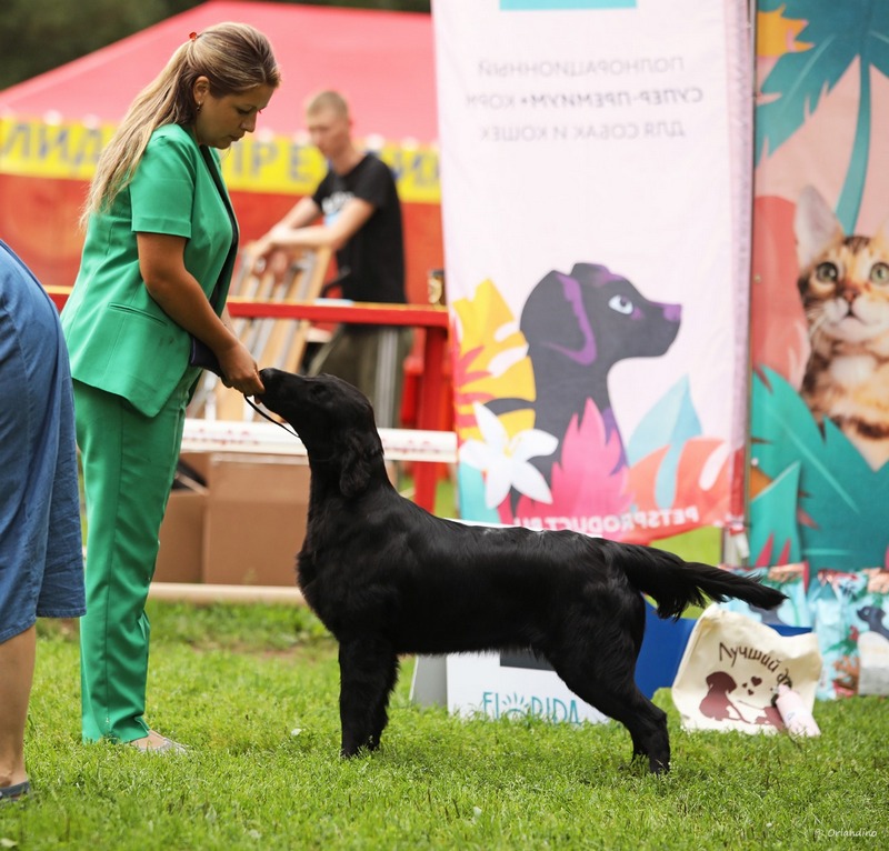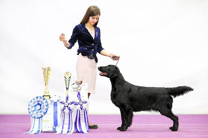 1. ЛУССО АНЖЕЛО ПРИНЧИПЕССА ДЕЛЬ РЕНЬО ФЛЭТ ( на конец 2018 г. она Вице-чемпионка Мира 2016, Интерчемпион, юный чемпион 5 стран, чемпион 18 стран, 55 CACIB, неоднократный победитель( ЛПП) Евразии и России, неоднократный чемпион НКП, Чемпион Балтии, Балкан, 55 ЛПП, в том числе на крупнейших выставках Евразии, России, на международных выставках Италии, Беларуси, Польши, Литве, Эстонии, Словении, Венгрии, на национальной выставке флэтов в Санкт-Петербурге)