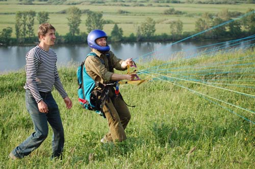 Времени хватило и на то, чтобы преподать нашим друзьям "мастер-класс по парапланеризму". Кажется, ребятам понравилось.