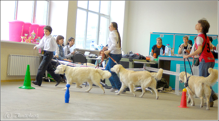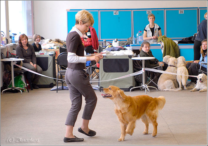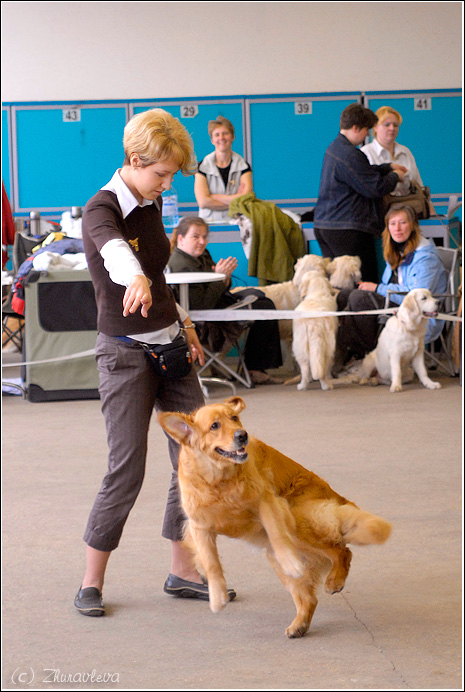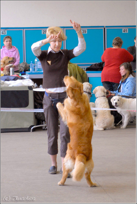 На выставке "РЕТРИВЕР - ВЕСНА 2008" зрители смогли увидеть замечательный танец в исполнении Лены Малиновской и ее голден ретривера Илона Сан Шайн.