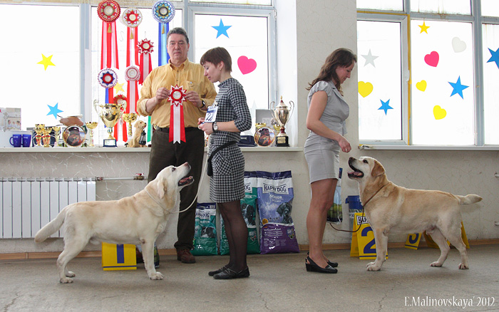 22 апреля 2012 г., Москва, эксперт Bjarne Sorensen, Норвегия - взрослые лабрадоры кобели