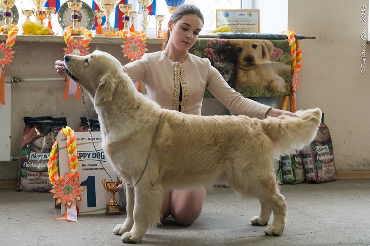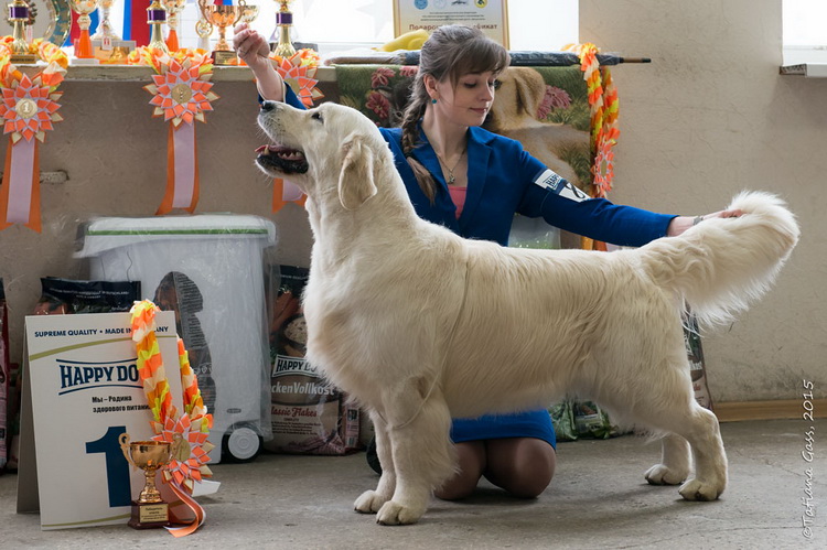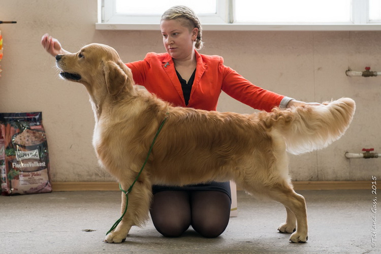 18 апреля 2015 г., Москва, золотистые ретриверы: взрослые кобели, эксп. Borge Espeland (Норвегия)