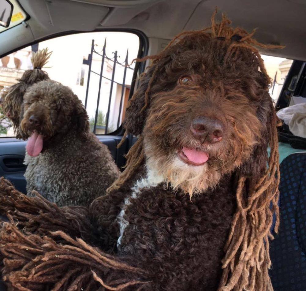 Немного интересного про шерсть.😉 Породный и не породный груминг. Шерсть испанской водяной уникальна. Одна из особенностей породы именно шерсть - согласно стандарту - Всегда курчавая и пушистой текстуры. Короткая шерсть кудрявая, длинная может быть шнуровой. Стрижка допускается, но шерсть везде стрижется равномерно и оставляется одинаковой длины; «модельная» стрижка не допускается. Но большинство питомцев это домашние любимцы. И конечно дома не каждый готов растить дреды. А самое ужасное когда шерсть растет себе растет, а владельцы ждут волшебного преображения в дред, а получают "войлок", да ещё такой что когда всю эту красоту сбривают то с собаки как панцирь снимается. На фото (фото собак взято с открытой страницы David Morales) очень симпатичные ребята , подстриженные так как захотел владелец. У большинства шоупород выставочный вид и стрижка для дома кардинально отличаются. Если вы не планируете выставки, очень рекомендую делать шерсть удобной для собаки и для вас. Желательно впервый раз раз всё же забрить(стрижка машинкой) щенячью шерсть, а далее уже по мере роста можно регулировать длину шерсти по желанию. Только не чесать, если шерсть не запускать до колтунов (кожа собаки должна полноценно дышать) то отлично выглядит стрижка машинкой с регулировкой длины в разных зонах корпуса. Это лучший путь чем запускать шерсть на собаке до варианта- "резать к чёртовой матери не дожидаясь перитонита", ну и забритый наголо испанец (думаю и любая другая порода тоже) то еще зрелище )) Собака ваша и вам решать как она будет дома радовать ваш глаз. А что же если в ринг? Однозначно первичная стрижка машинкой по корпусу. Далее частое мытьё и в моменте кудри переходящей в сваливание тщательный разбор шерсти руками. Такую процедуру проделав раз нужно поддерживать, это не сложно и не долго. И очень успокаивает нервы) почти как вязание)) Конечно собака это живое существо, и если живёт с вами полноценной жизнью, а не как "хрустальная ваза "то шерсть так же портится, снашивается в месте ошейника, между пальцев может преть, то гигиеническую стрижку никто не отменял конечно. Здоровье и комфорт собаки должно быть в приоритете. И конечно "сельская"собака в ринг собака не должна идти как из канавы. Другой разговор что любой грумер прекрасно стрижкой исправит некоторые недостатки, а хочется напомнить что испанская водяная, опять же написано в стандарте - Сельская собака. СЕРЬЁЗНЫЕ НЕДОСТАТКИ/ПОРОКИ: Провисшая спина, слабая поясница. Неправильное строение и постав конечностей. Отвисший или излишне подтянутый живот. Конечно сделанная грумером красивая картника у грамотного эксперта при осмотре руками ничего не скроет. Во всяком случае заводчики России продолжают в это верить. Стандарт породы https://info.rkf.online/cat/21/art/1325/ispanskaia-vodianaia-sobaka-336?abc=И&prev_cat=21 Фото собак взяты со станицы г-на Дэвида Моралеса создатель RASTAdog (косметика и уход ,испания), а на фото с бантом его собака в возрасте 16ти лет. А это наша Барселона в домашней стрижке для лета, подстрижена без применения расчески.