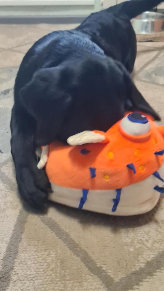 Мелкий добыл себе новую игруху. Полькин тапок 🙂 Щасливый 🙂 Носится с ним по квартире, забороть хочет 🙂