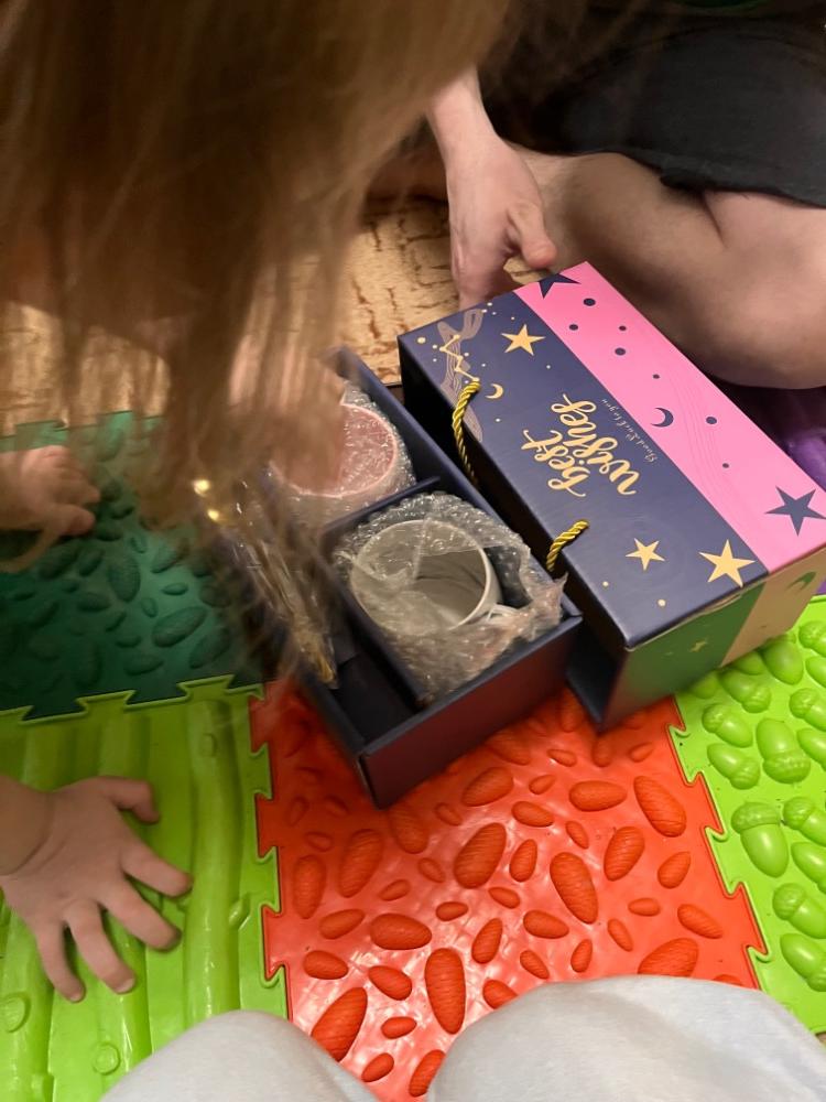 Огромное спасибо за такое огромное разнообразия подарков! Остались довольны все! Муж с превеликим удовольствием открыл бокс, удивился метким попаданием, все под его вкус. Передает огромную благодарность за внимание ☺️ Таймырушке сразу досталась порция ароматных печенек с лососем! Это важно, ведь он у нас любитель рыбы 🥹😋 Бокс с кружками отдельная любовь 😍 Они настолько мило и аккуратно сделаны, что мы после распаковки побежали сразу пить чай, наслаждаясь каждым глоточком ❤️Фотография ночника не передает всей прелестной картины и атмосферы ☺️ В заключении, хочу еще раз поблагодарить нашего Деда Мороза, возможно и не одного, за веру в чудо, за душевные подарки, за чуткое внимание и любовь к каждому из нас! Нам очень все понравилось, спасибо за новогоднее настроение хоть и в конце января 😁 Ведь даты не имеют значения, главное тепло и забота вложенное в эти подарки 😍❤️ Всех обнимаем и любим 💞24 балла