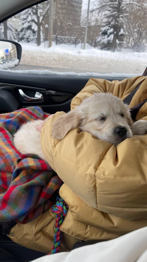 Ну, а теперь буду показывать наших деток по отдельности:))) Звезда Севера Профитроль - он покинул дом самым первым, сразу после фотосессии. Теперь живет в Подмосковье со своим хозяином Андреем, помогает ему работать на удаленке, так что одиночество Профитролю не грозит. Золотистый ретривер у Андрея первый, но он - собаковод с опытом, держал хаски и овчарку, так что малыш наш в надежных и очень ответственных руках21 балл