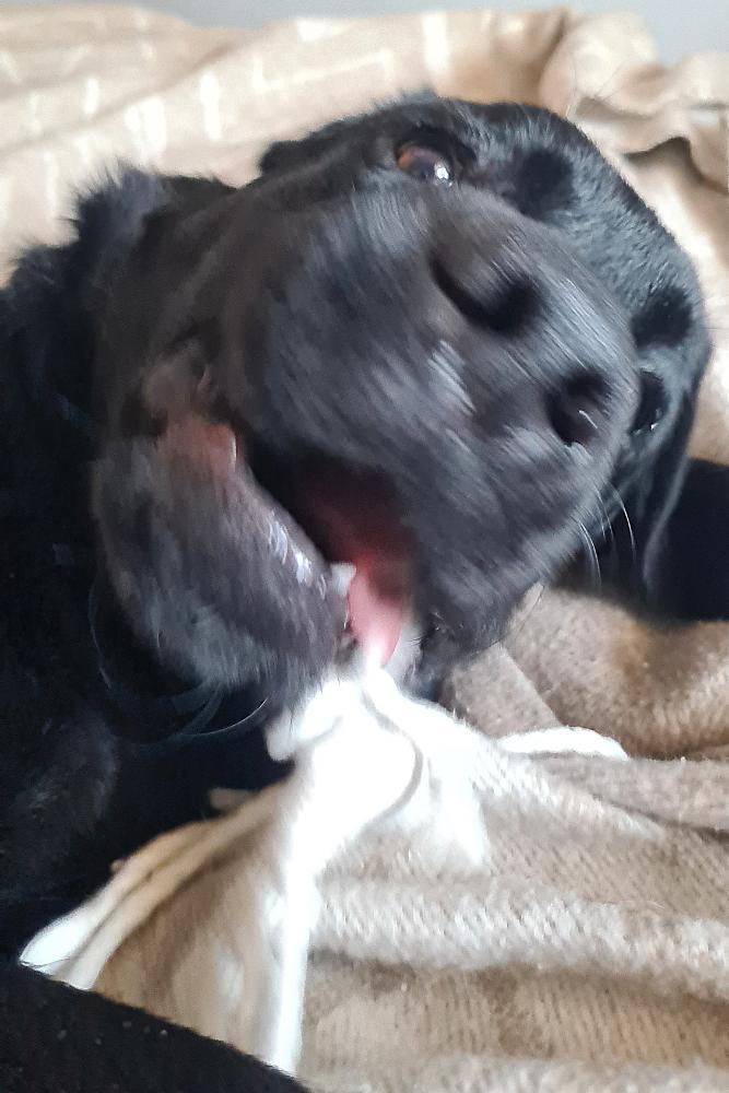 Ну и Крис... ее история началась ровно год назад, в январе 2025 года. Началась с того, что объявление о ее переустройстве увидел муж в ВК. Мы тогда пытались ее забрать домой, но получилось это сделать только в октябре 2025 года. Благодаря моей подруге, которая смогла привезти мне собаку из Рязанской обл., Крис, наконец-то, приехала к нам. Ее история для меня туманна. Хозяйка не говорит всю правду, а то, что мне известно о собаке - все только со слов соседки, которая подкармливала Кристюшу и занималась ее переустройством. В общем... с цепи на диван. Это наша Крис или Криста.20 баллов