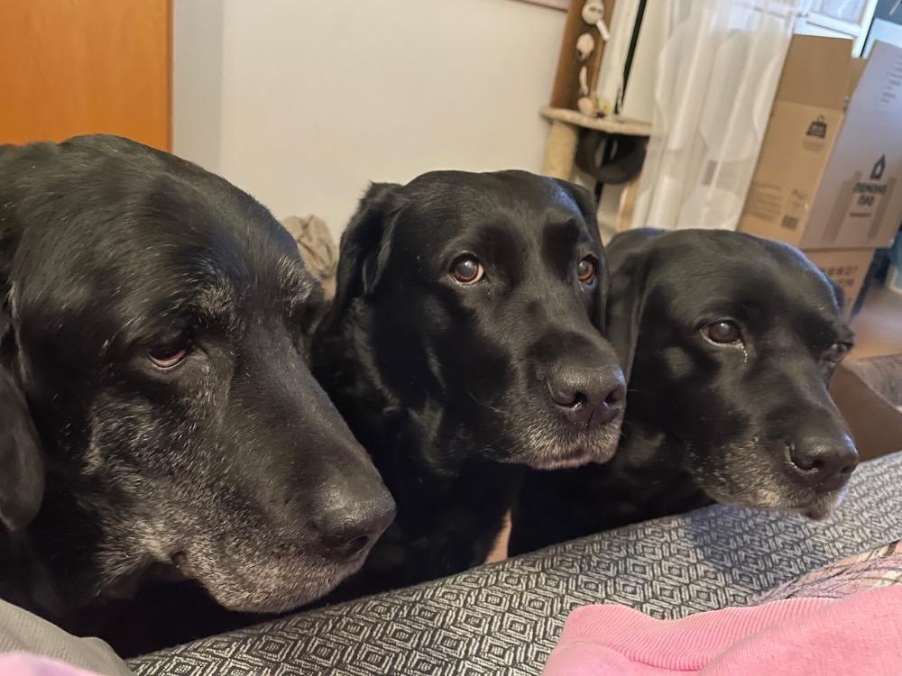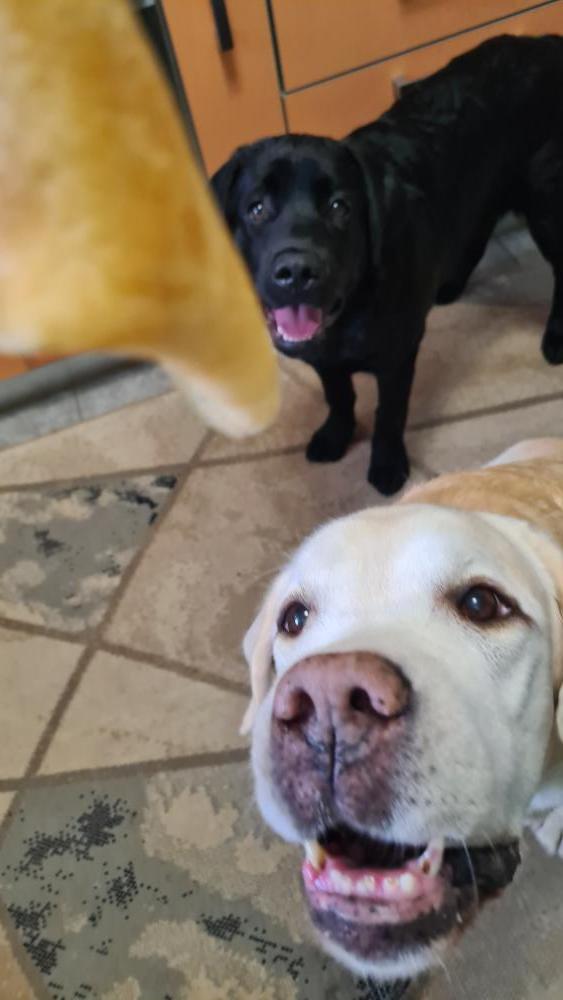 Всем доброго утра! Я подумала, что и мне пора... И хотя я не новичок, я на форуме давно, но все не решалась показать нас, нашу кампанию веселых хвостов. Сейчас у нас три девчули. Лабрадорки - черная Бэсси и шоколадная Крис. А еще голдяшка-кудряшка Кейра. Мы живем в Волгоградской обл. в г. Волжском. Собаки с нами живут уже 23 года. Но о первых собаках немного позже. Бэсси-Бесяка... Она появилась у нас тогда, когда стали уходить одна за одной мои первые собаки. Бэсси стала моим спасением от тоски. Мы ее взяли в питомнике Дон Алмаал. Бесяшке было 6 мес. И ей пора было домой. Вот так она стала нашей.23 балла