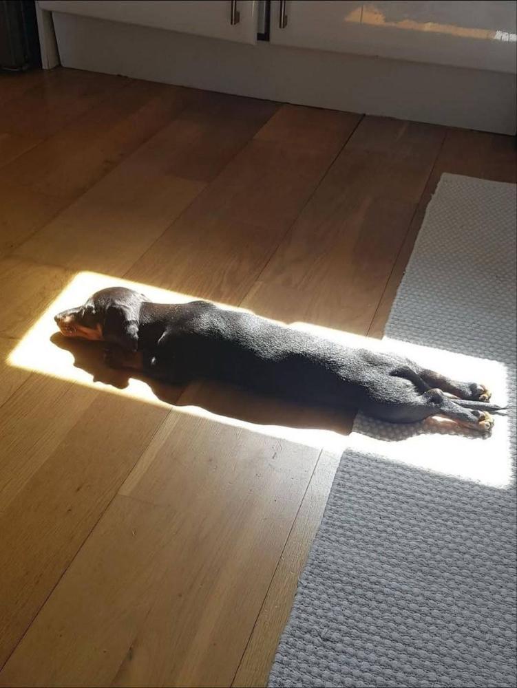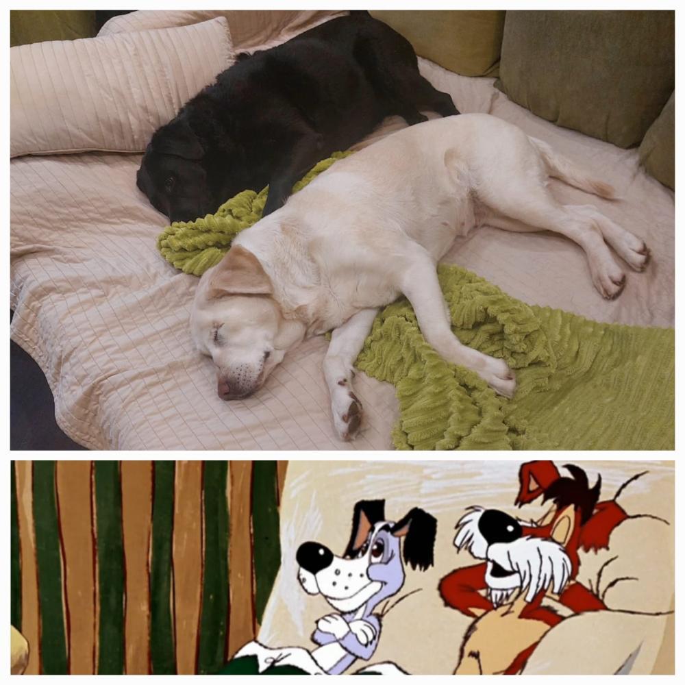 Актриса погорелого театра, а не собака. После ночного выгула сказали не лезть сразу на кровать, подождать пока высохнут лапы после мытья. Пришли с дневного, помыли и оно тоскливо само легло печалиться на диван. Ну да, горе горькое у собаки, 15 минут сказали на диване лежать вместо кровати с чистым бельём, как пережить такое унижение!!! Там ещё под рыжей жопкой 2 игрухи сныкано, отворачиваешься - играет, поворачиваешься - грусть-тоска-печаль 😁 Потом пошла в клетку. Тоже сама, никто не просил. Зашла, походила, понюхала, увидела меня с телефоном - стала предлагать позы для фото. Логично, на столе стояла шарлотка от Серёжи в этот момент, вдруг удастся заработать 😁6 баллов