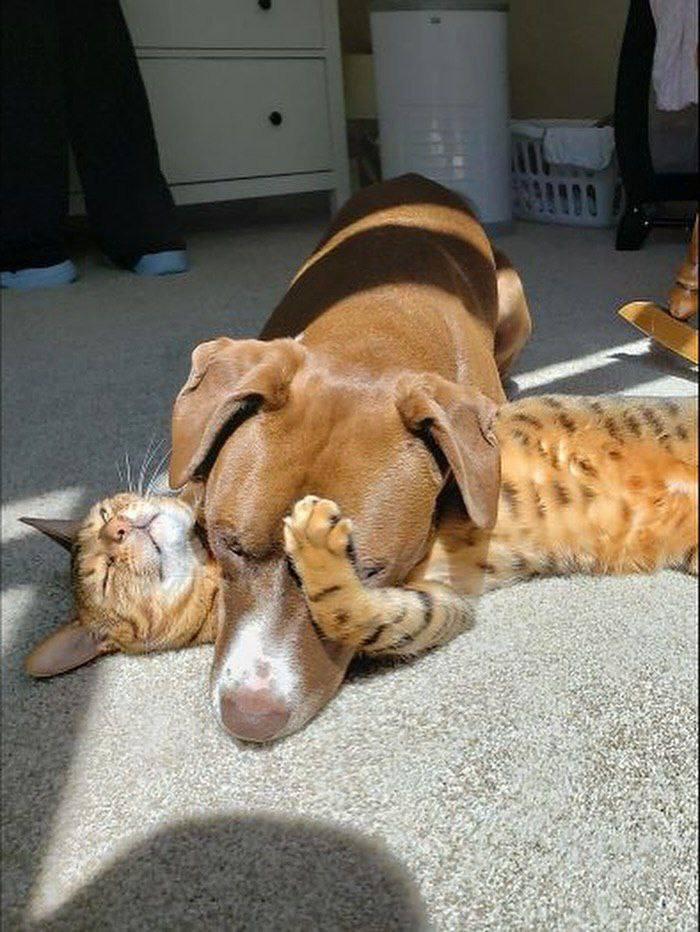 Хаха)) У меня наверно наоборот кошка так думает: почему я теперь ем как собака, когда положат? И почему теперь вместо меня на кровати с мамой лежит собака? И почему собаке даже халатик после ванны купили, а я "сама умоешься"?2 балла