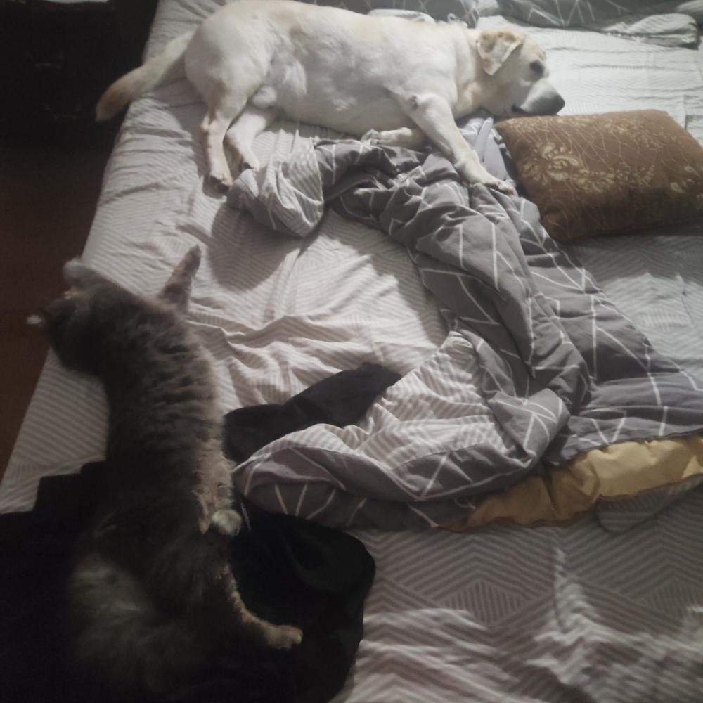 Второй день дома тишь да гладь. Непутёвый наш заходит домой к ужину,ест и ныряет на лежак -всё, никто его не наблюдает. Утро,правда, началось с того,что он пытался жрать мне ноги через одеяло. Но мы ж помним,что я не могла проснуться. В общем,встала в девять. Завтрак кошачий запоздал на 2 часа. Кент,видимо,понял бессмысленность попыток поднять мать,потому отстал от меня,пока я сама не встала.1 балл