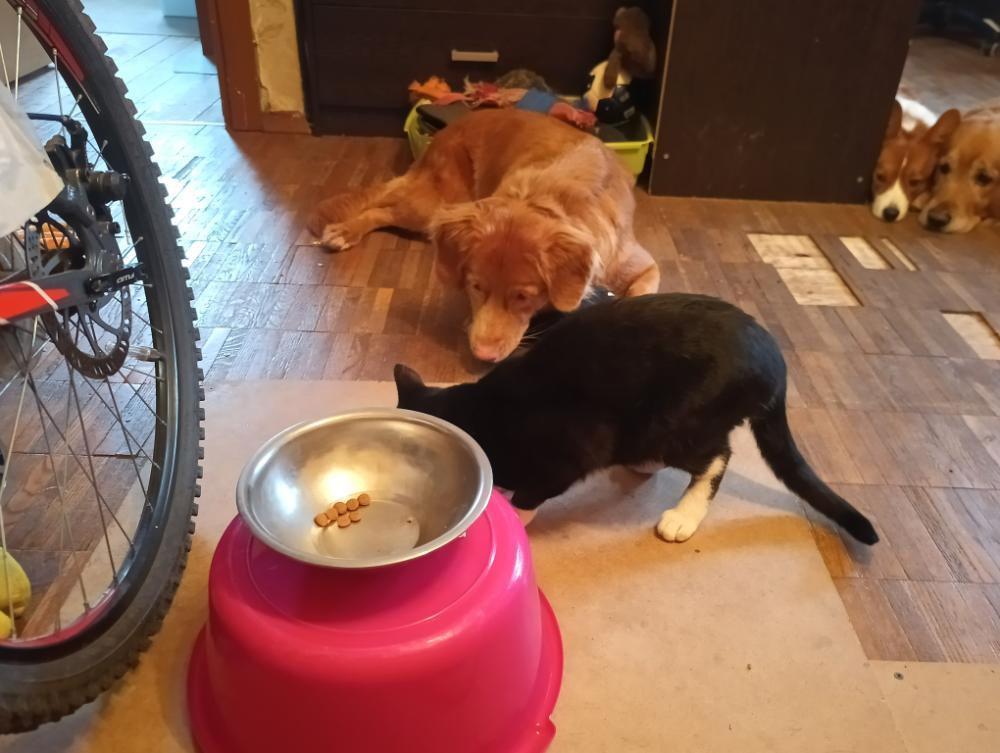 Faza-Вьетнам Опубликовано Четверг в 07:47 Опубликовано Четверг в 07:47 Получая 2 дня таблетки путём запихивания в недра, на третий толлер вежливо поинтересовалась, а нам обязательно вот этим спортом заниматься, или она может просто их съесть. Теперь просто протягиваешь таблетки и она быстро их съедает, пока опять не начали лезть в толлерские недра)))) до неё так только Герочка сделала, которая с момента взятия до года наблюдала дачу лекарств Васечке, а это было больше похоже на родео в смеси с шоу с дельфинами. Скачки по всей кухне, слюни и часть лекарства на люстре, поваленная мебель и т.п. И когда Герочке пришло время давать противоглистное перед прививкой, я тяжело вздохнула и позвала её с таблеткой в руке, она тихо подошла, аккуратно вытянула у меня её из руки и спокойно съела. С тех пор так и ест любые лекарства и суспензию пьёт, очень удобно, просто протягиваешь и говоришь "ешь" и она ест. А теперь вот и вторая противница насилия завелась, тоже сама жуёт всё. Это просто офигенно экономит время и силы. Рыжка посмотрев на это тоже решила копировать, но она до того мерзко это делает, что порой проще запихнуть. у неё 8-10 циклов выплюнула-рассмотрела-обратно в рот. В итоге вот эту бесформенную слюнявую массу она съест, но извозит пол морды в этом))) так что иногда несмотря на желание съесть самой таки насильничаю. На фото Ханни смотрит как дружок котик доедает то что она оставила от завтрака. Ей жалко и она против, но и самой не лезет и котика любит. Вся в противоречиях, аж песенку спела. Ещё двое рыжих смотрят за разбазариванием, они бы лучше сами доели, осуждают. Третья из клетки осуждает совсем всех. Могла бы - убила бы))) Ну и Ханничка после спрашивает у котика как зашло ему, вкусно ли было )))) 1 4