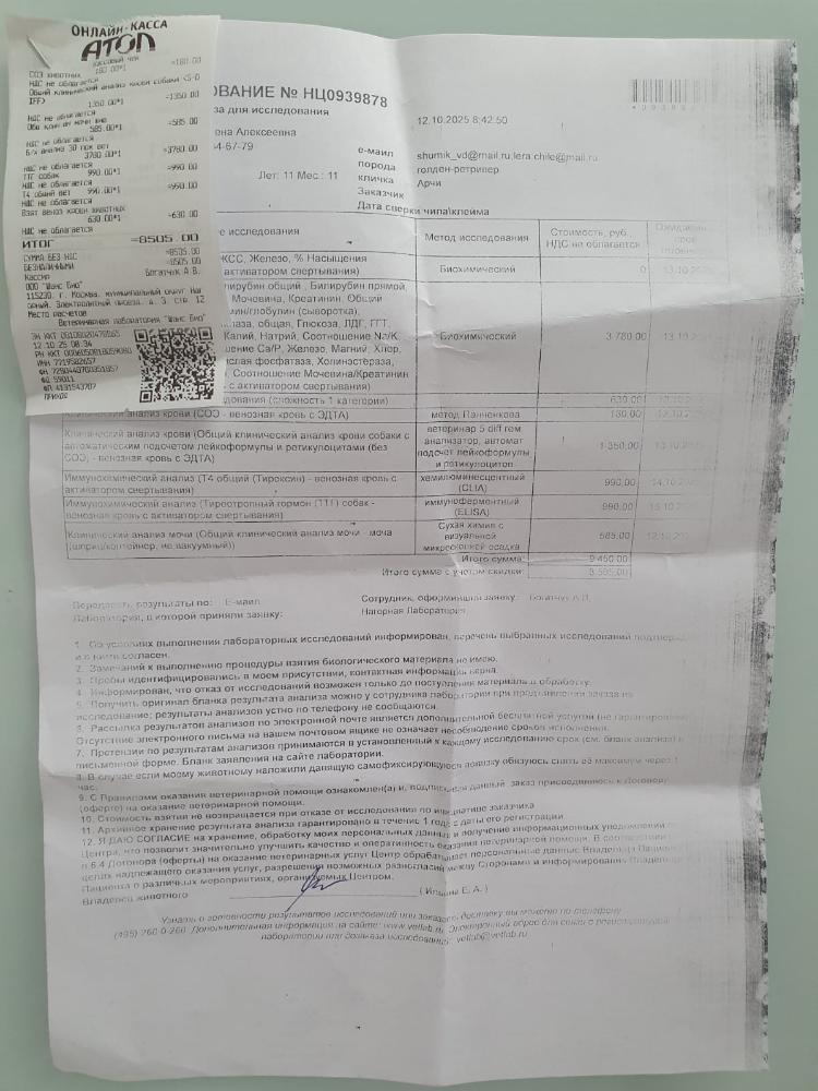 Шумахер Опубликовано 11 октября Опубликовано 11 октября Отчёт. По теме Минус 2578 Приход OlyaOs -6000 Расход Стоп цистит -815 Кардио обследование -5400 Зоотакси -3000 Остаток по теме Минус 5793. Паралельно лечим цистит. Цистит при низком иммунитете будет преследовать Арчика постоянно. Боремся. Завтра у Арчика контрольные анализы. Реквизиты помощи номер телефона привязан к карте сб на имя Елена Алексеевна И. С пометкой Арчи .