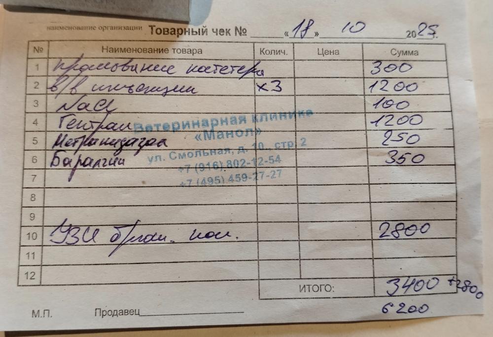 wina Опубликовано 15 часов назад Опубликовано 15 часов назад (изменено) Купила лекарств колоть внутримышечно, если не будет возможности вливать внутривенно. Гептрал, метронидазол, баралгин, шприцы. Расход 3000. О хорошем. Покормила второй раз, так же, моро-морковь+ индейка приваренная. Доня поела, спит. По опыту сегодняшнего дня вылетит это с заднего прохода завтра. Ждем, в каком виде. Еще и с кошкой почти то же самое, не ест, рвет. Поеду завтра с двумя черными... Изменено 15 часов назад пользователем wina 1