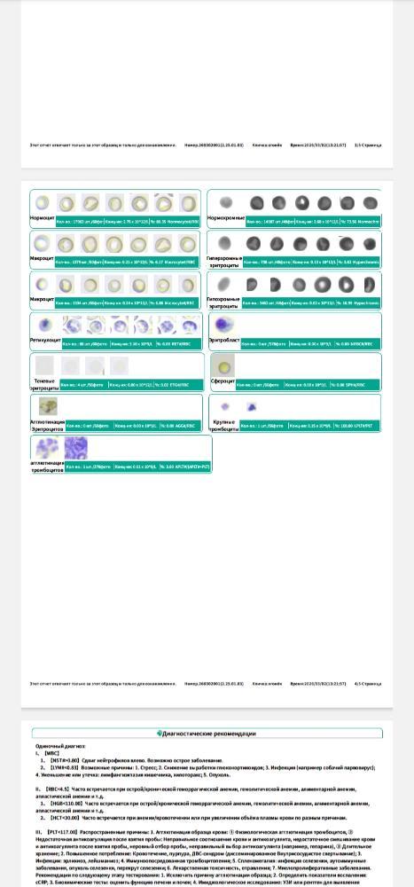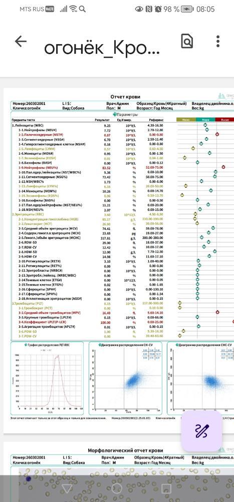 Ольга и Огонёк Опубликовано 3 часа назад Автор Опубликовано 3 часа назад 40 минут назад, Светлана 2101 сказал: Оль, по тромбоцитам. Уточни, как смотрели. Анализатор или вручную? Они могут склеиваться в столбики при заборе крови, и тогда анализатор считает как за 1. Нужно перепроверить вручную. Возможно их и больше. Я с таким сталкивалась. Всё низкие, низкие. Перепроверили вручную, и стала почти норма Спрошу. Вот такие ещё были листы. Но весь файл не загружается, скрины только 1