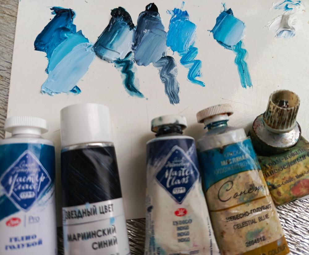 Colorelle Опубликовано 20 сентября Автор Опубликовано 20 сентября Гелио голубой. Меня накрыло отчаяние. Скажем так, я уже не раз писала о том, что не могу адекватно передать на фото бирюзовые оттенки. Они все сваливаются просто в синий с голубым. Нарисовав за это лето несколько бирюзовых работ, я каждый раз расстраивалась при их фотографировании. И вот я купила новую шикарную, просто обалденную краску «Невской палитры» , и не могу её нормально показать... Она нереально красивая, безумно пигментированная, очень тёмная из тюбика. Первая мысль была, похожа на Мариинский синий из предыдущего обзора, но Мариинский светлее, грязнее и зеленее. А тут ну просто вау. Несмотря на название, этот гелио совершенно не похож на небесно-голубую, скорее он начисто вытеснит из моей палитры хромкобальт сине-зелёный. На фото и видео красоту эту не видно, к сожалению, и коррекция цвета в фоторедакторе нифига не помогает ( но живьём этот цвет меня завораживает. Привожу фото при разном освещении, ни на одном из них цвет не похож... Кстати, по фото обзоров я тоже ожидала увидеть просто яркий голубой оттенок , однако всё оказалось значительно интереснее... Если вы любите бирюзовые оттенки - то вы обречены влюбиться в эту краску ) Мастер-Класс Масляные краски для рисования 46 мл Гелио голубой №596 3