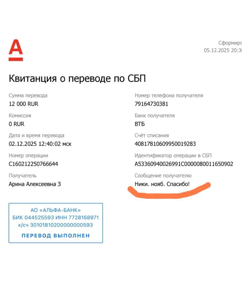 Elena_Tu Опубликовано Пятница в 17:32 Опубликовано Пятница в 17:32 Проживание Ники в ноябре тоже было оплачено. Квитанция на 12000 руб. 1