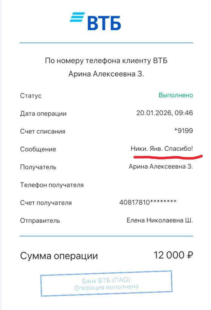 Elena_Tu Опубликовано 30 января Опубликовано 30 января В 23.01.2026 в 22:02, Коробкова Ирина сказал: От нас немного на Альфу Ирина, получила 1500 руб. спасибо большое! Простите за долгий ответ, пропустила. 1