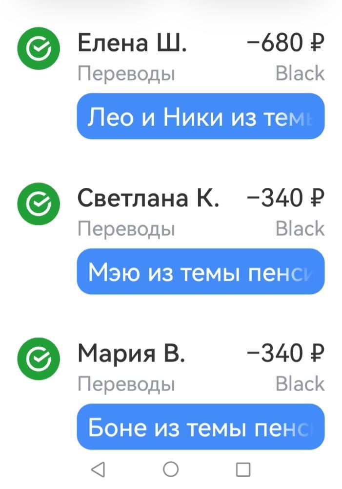 Вера&Сильвия Опубликовано 5 февраля Опубликовано 5 февраля 1 час назад, Ольга и Огонёк сказал: не очень понятны такие переводы....если кто-то хочет поймать на том, что не отпишусь, то могу сразу огорчить, я если их и не увижу сразу, то потом найду...могу запутаться, не увидеть, но найду... если это не так, то приношу извинения..ну и частые мелкие переводы. могут заблокировать карту... Оля, может быть у кого-то округления суммы на счете или суммы покупок стоят на перевод на твою карту? 3
