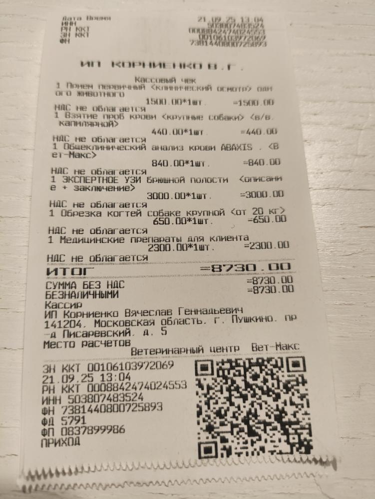 Не выкладывала чек за поездку к врачу, закрутилась. Исправляюсь.