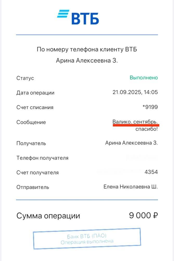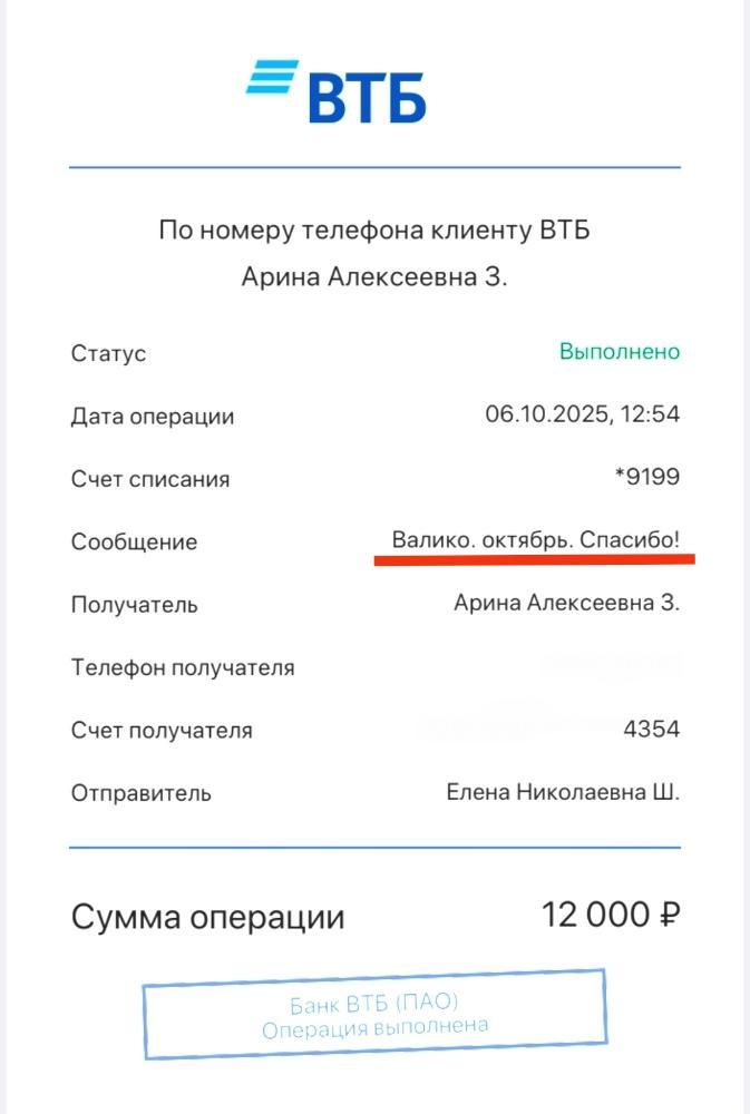 Для Валико получено 1000 руб. от Юлии Ф. на Альфу. Спасибо большое! ❤️