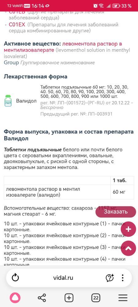 kiryusha0708 Опубликовано 20 ноября Автор Опубликовано 20 ноября 4 минуты назад, Внучка сказал: Неверное решение. Валидол не содержит фенобарбитал. https://www.vidal.ru/drugs/validol?ysclid=mi7gd52yy4838405387 Нужен был жидкий препарат, содержащие фенобарбитал (корвалол, валокардин, валосердин в каплях). Я перепутала. Валокордин)голова не оч свежа за сегодня