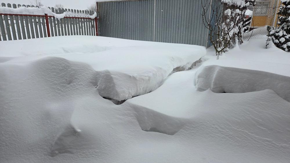 Мандаринка Опубликовано 7 часов назад Опубликовано 7 часов назад 55 минут назад, Светлана-и-Грей сказал: Сегодня снегоступы надела прям у крыльца. Без них я бы никуда не дошла. В лесу не фотографировала, не до этого было, употела. Розарий покажу и Грейку на его фоне. Снег валит и валит. А как у вас дела? Москву тоже заметает? Сегодня и Москве снегоступы можно прямо у подъезда надевать, по крайней мере, у нас))) Эх, а мне завтра на дачу надо бы съездить...