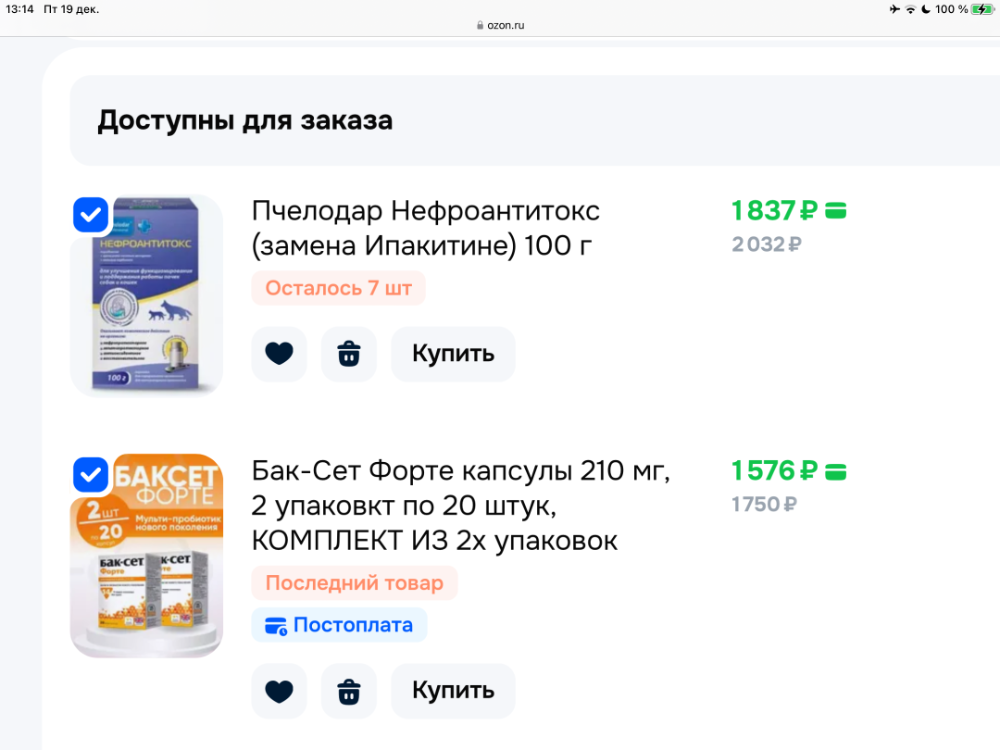 Roman747 Опубликовано Пятница в 13:06 Опубликовано Пятница в 13:06 (изменено) 8 минут назад, alkor17 сказал: Корм пока оставляем Акари Киар (с содержанием белка 21%, в реналах 20%), Лидия Валерьевна сказала, что подойдёт в нашем случае. Баксет форте оптимально нашла на аптека.ру https://apteka.ru/product/6928229c1a697deb208d085a/?v=5e32722df5a9ae000140cec3 Нефроантитокс на озон https://www.ozon.ru/product/pchelodar-nefroantitoks-poroshok-v-banke-100-g-396111236/ На озоне тоже вроде есть баскет форте, может там все вместе заказать? И по корму? Есть сейчас у Бруняши? Изменено Пятница в 13:06 пользователем Roman747