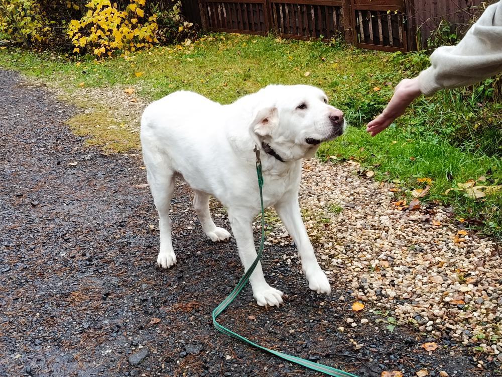 Как всегда вышел довольный жизнерадостный влияющий хвостом пёс.