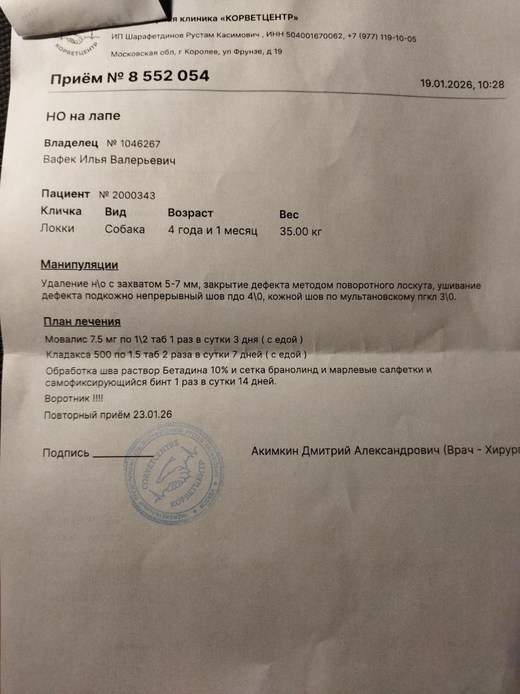Вячеславовна Опубликовано 15 января Автор Опубликовано 15 января Сегодня с Локки ездили к кардиологу и сдавать анализы перед операцией. Вес 36 кг. Кардиолог до операции допустила ( ждём на почту протокол обследования и результат анализов). Операция назначена на 19 января на 10.30 По стоимости вместе с гистологией 22-25 тр. ( более точную сумму -жду ответ от клиники). Финансовый отчёт. Приход: Ксения К. -1000р. Наталья Щ. -1500р. Левон А. -3000р. Марина К. -500р. Карина Ч. -1500р. Елена Б. -3000р. Итого собрано: 19500р. Расходы: Кардио, анализы -7929р. Зоотакси -1500р. Остаток: 10071р. 🙏🙏🙏🙏🙏🙏🙏🙏🙏🙏🙏🙏🙏🙏🙏🙏На операцию осталось собрать 14929р. 🙏🙏🙏🙏🙏🙏🙏🙏🙏🙏🙏🙏🙏🙏🙏🙏 Будем благодарны любой помощи для Локки!! Помогите Локки!!! МОЙ НОМЕР 89261818009 ПРИВЯЗАН К КАРТЕ СБ НА ИМЯ МАРИНА ВЯЧЕСЛАВОВНА М. С ПОМЕТКОЙ "Локки".
