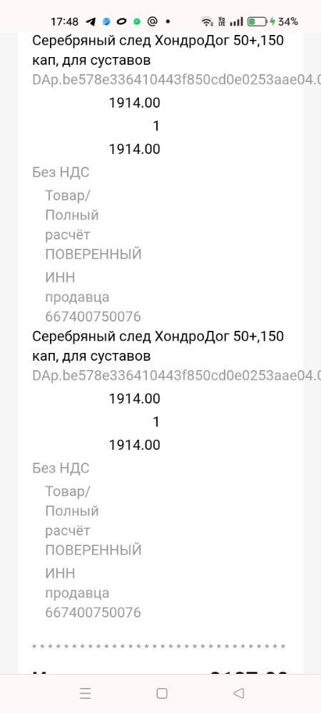Заказала  хондропротекторы три банки . Как Марина Вячеславовна получит . Чек будет в теме.