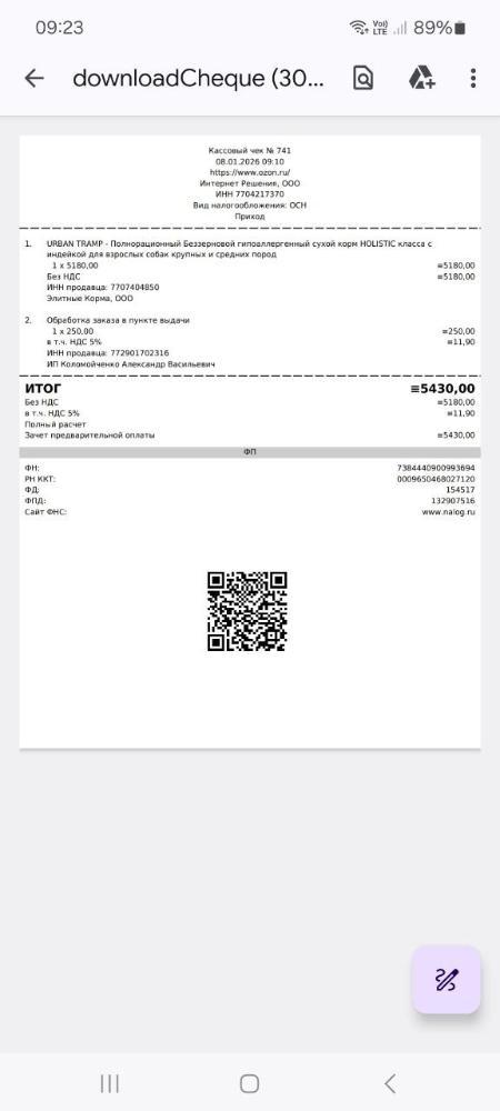 Для 5 собак -65 кг -8876.40