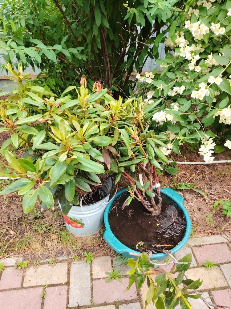 Эллен Опубликовано 13 июня Опубликовано 13 июня 2 часа назад, Наташа и Немо, 05.11.22 сказал: Вчера приезжала в гости подруга, моя тезка, тоже Наташа. Помогла мне пересадить рододендроны. Я в 5 утра их выкопала, замочила. Часов в 11 мы занялись обустройством клумбы. Пересадили чуть подальше можжевельник, а между двумя можжевельниками высадили 4 рододендрона. В лунки подмешали торф кислотностью 2,5-4,0 и гранулированную серу, сверху посыпали корневином и споробактерином и тщательно пролили водой. Корни все переплетены были, очень тяжело разодрать торф, теперь я понимаю почему мои рододендроны чахли, садить их сразу перевалкой была серьезная ошибка, они никогда бы сами не пробились через эту сплошную сетку из торфа! Кое где даже стригли ножницами торф. Можно было бы им часов 12-15 дать по отмокать, ну уж как случилось, обещали дождь и нам хотелось успеть до дождя. Теперь волнуемся и ждем - прижились бы?! Рододендроны после пересадки могут скинуть очень много листвы и выглядеть неважно. Это нормально, главное, чтобы новые побеги начали расти 3 1
