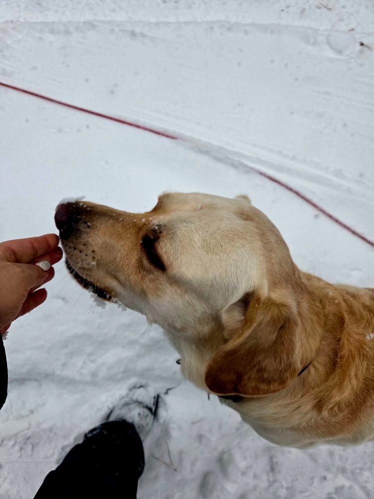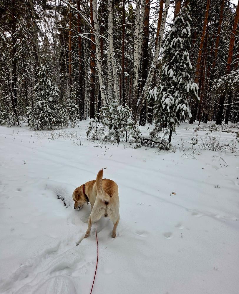 Наташа и Немо, 05.11.22 Опубликовано Понедельник в 08:18 Автор Опубликовано Понедельник в 08:18 Морозы у нас отступили на пару дней, оттепель, а потом опять до -30! Много снега навалило, тяжело ходить, ноги проваливаются по щиколотку. Поэтому часик погуляли, всего 3 км накружили и выбирали дороги, где натоптано или наезжено. Хотя так хотелось свернуть по нехоженным тропам, отстегнуть шнур, набегать, надурачиться с Немиком! Эх, где мои 16 лет?!:))) Встретили стаффа, запряженного в детские саночки, в санках гордо восседал в пальто француз! И смех и грех! Не сфотографировала, Немочка очень волновался, т.к. близко мы подошли к ним – порывался помочь стаффику, пришлось достать шокер, а когда сел и преданно смотрел в глаза – накармливать мясом! 11