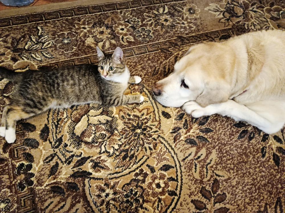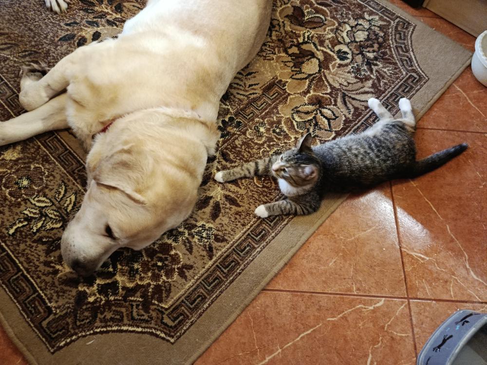 Меня всегда так умиляет, когда кошка спит рядом с собакой. И ведь сама идёт под бочок.
