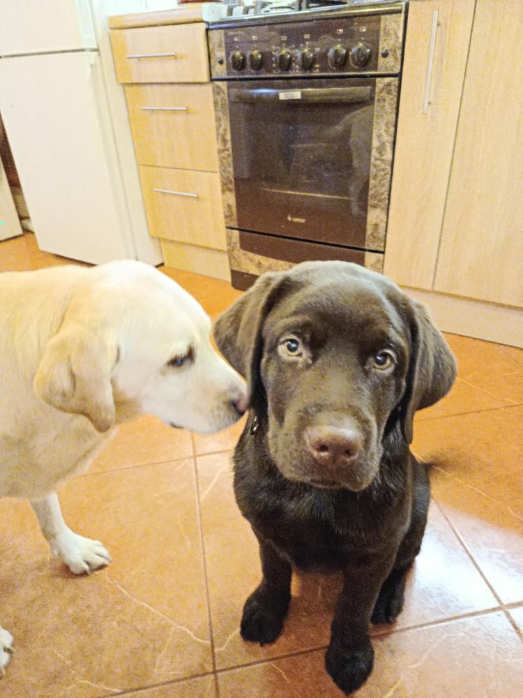 Гулять пошла с Виски и со своими по очереди. Виски 2 раза ходил.