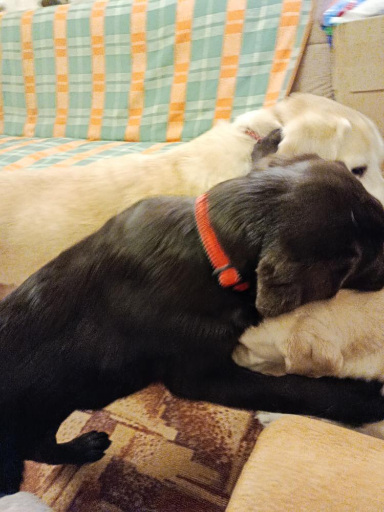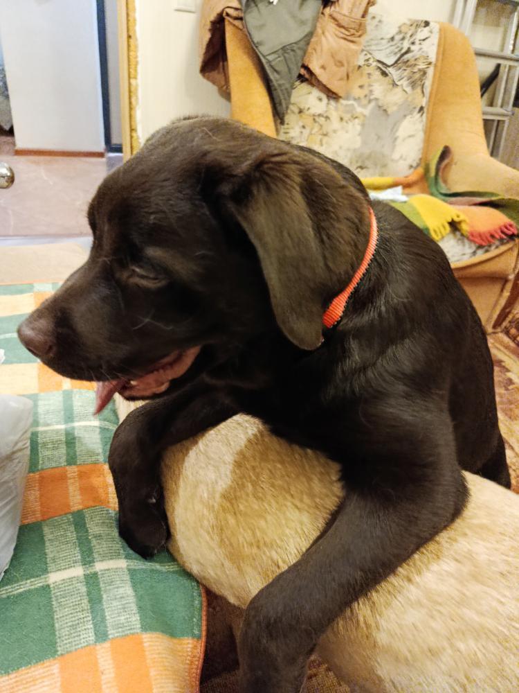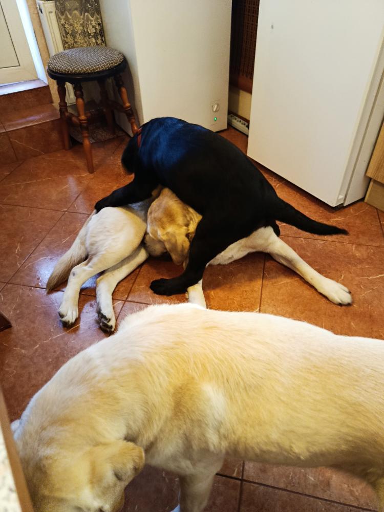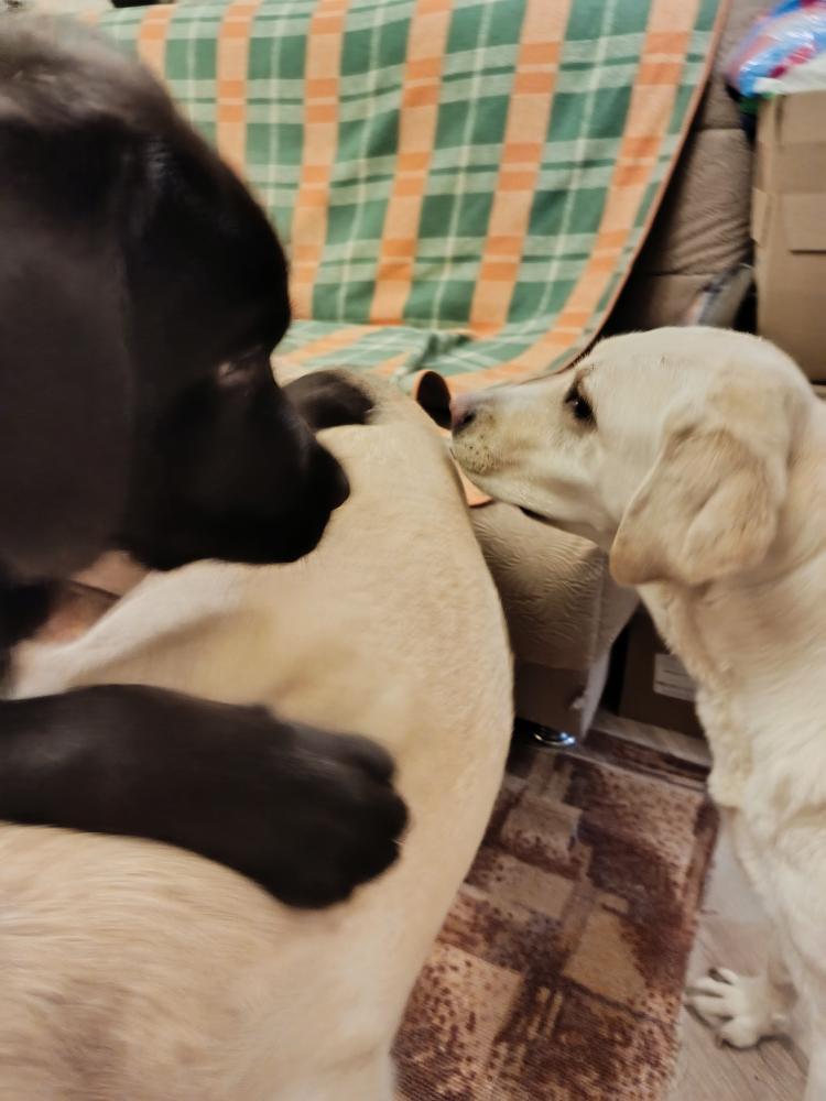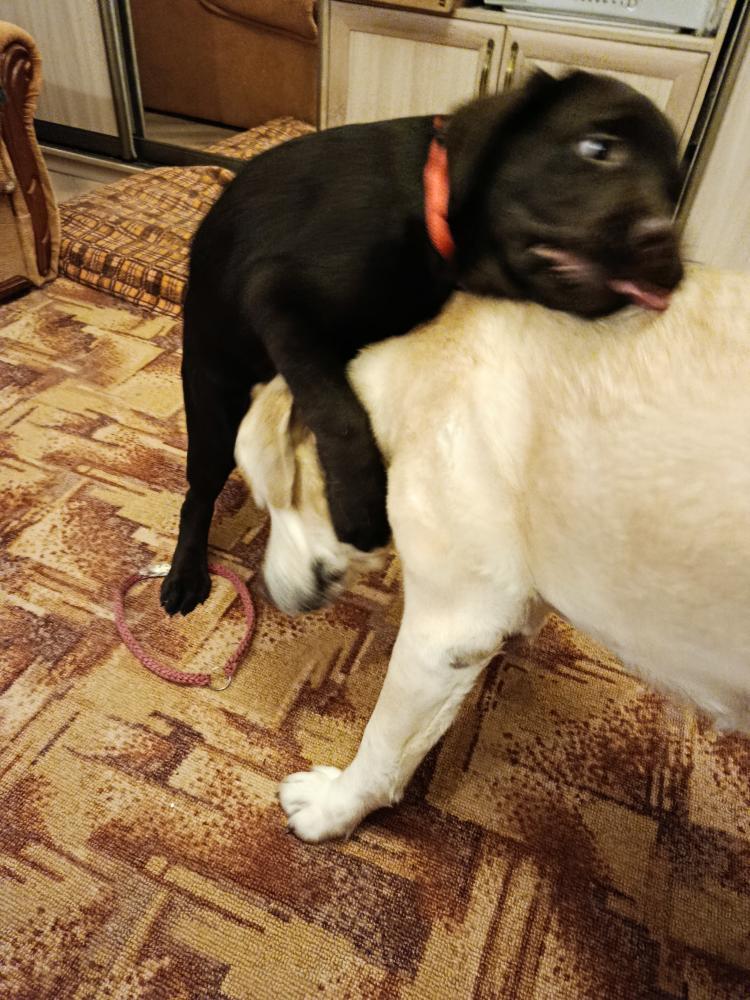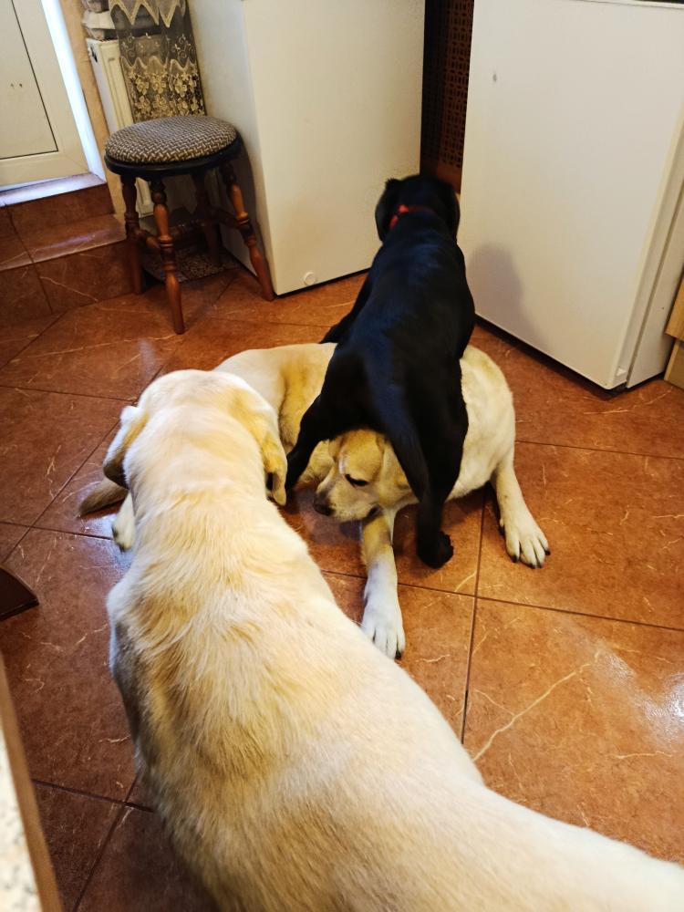 Линка всё таки стервоза. Сама Виски провоцирует. Сегодня уже в стойку перед ним, в ушки лижет, хвостом виляет. А как он к ней , так огрызается.