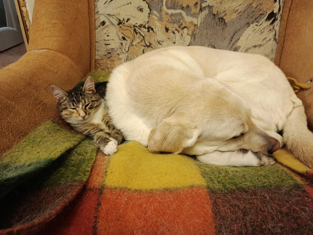 Даже не могу ее в руки взять, вырывается, чтобы дать ему понюхать. С моими то быстро всё сложилось, она хоть и шипела, но не так. У меня на руках вообще спокойно они её нюхали.  Котьку в клетку закрыла пока Виски у нас.