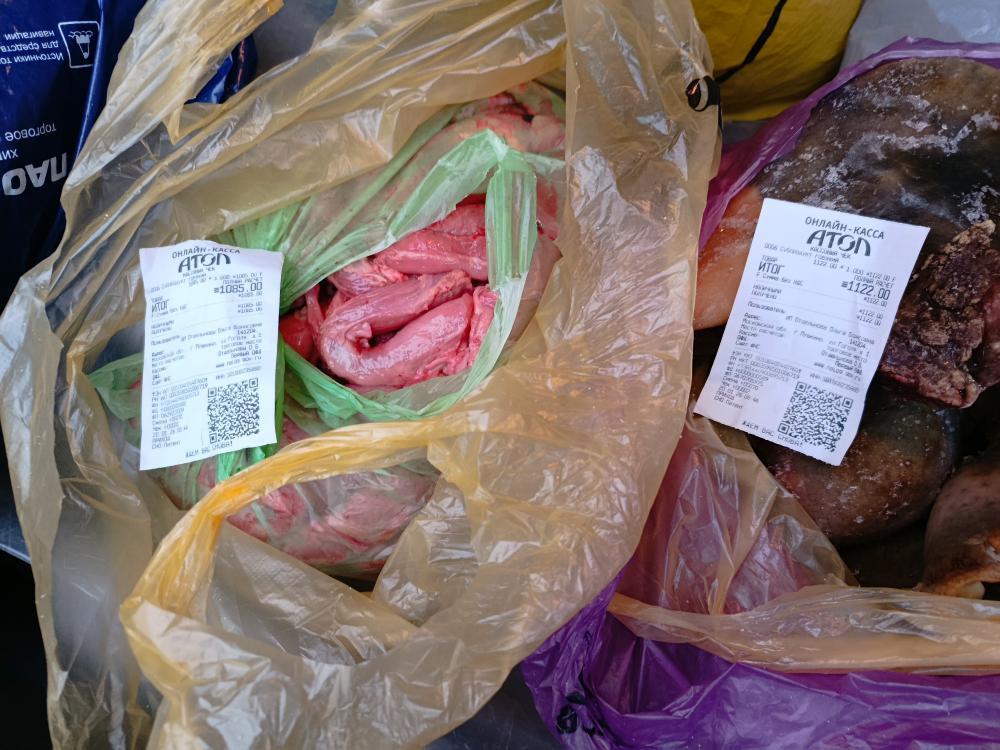 Губы 2.5 кг по 210 руб на 561 руб (чек на сумму 1122 пополам с Линой) - губы на февраль по пути.  5 кг на двоих резать долго, поэтому их лучше брать по возможности отдельно от всей закупки