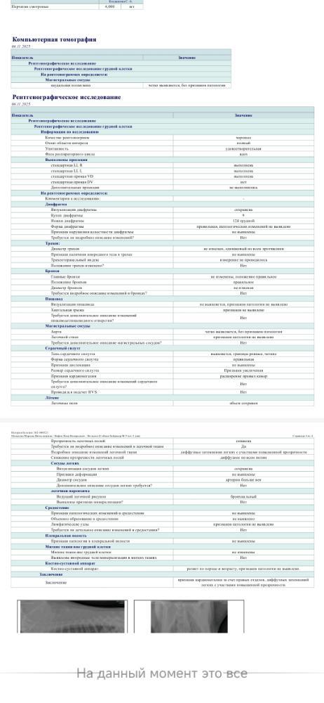 Проведён торакальный рентген: признаки диффузных затемнений паренхимы лёгких.