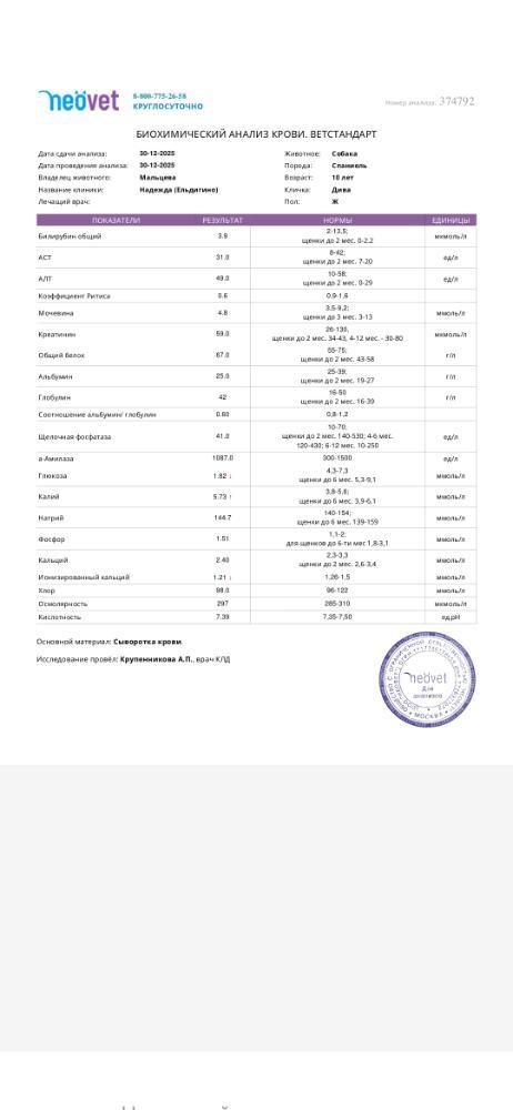 Вячеславовна Опубликовано 4 часа назад Автор Опубликовано 4 часа назад Добрый вечер! Благодарим за помощь в закрытии минуса🙏😍 2 января Дива едет к кардиологу. На днях сдали анализы ока и биохимия. Финансовый отчёт. Остаток: 0 Приход: Елена С. -1000р. Анастасия О. -2500р. *Nastena* -1000р. Расходы: Ока, биохимия, забор крови, вызов врача - 3350р. Остаток: 1150р. Будем благодарны любой помощи!!! Помощь Диве очень актуальна🙏🙏 МОЙ НОМЕР 89261818009 ПРИВЯЗАН К КАРТЕ СБ НА ИМЯ МАРИНА ВЯЧЕСЛАВОВНА М. С ПОМЕТКОЙ " ДИВА"