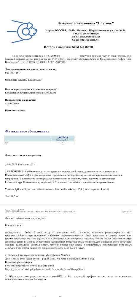 Арчи (Данька) борется с лейшманиозом🙏 Нужна помощь на покупку МИЛТЕФОРАНА и лечебный корм🙏 Сумма к сбору 55000р! ПОМОГИТЕ!! Своих не брoсаем🙏💕 Куратор Вячеславовна