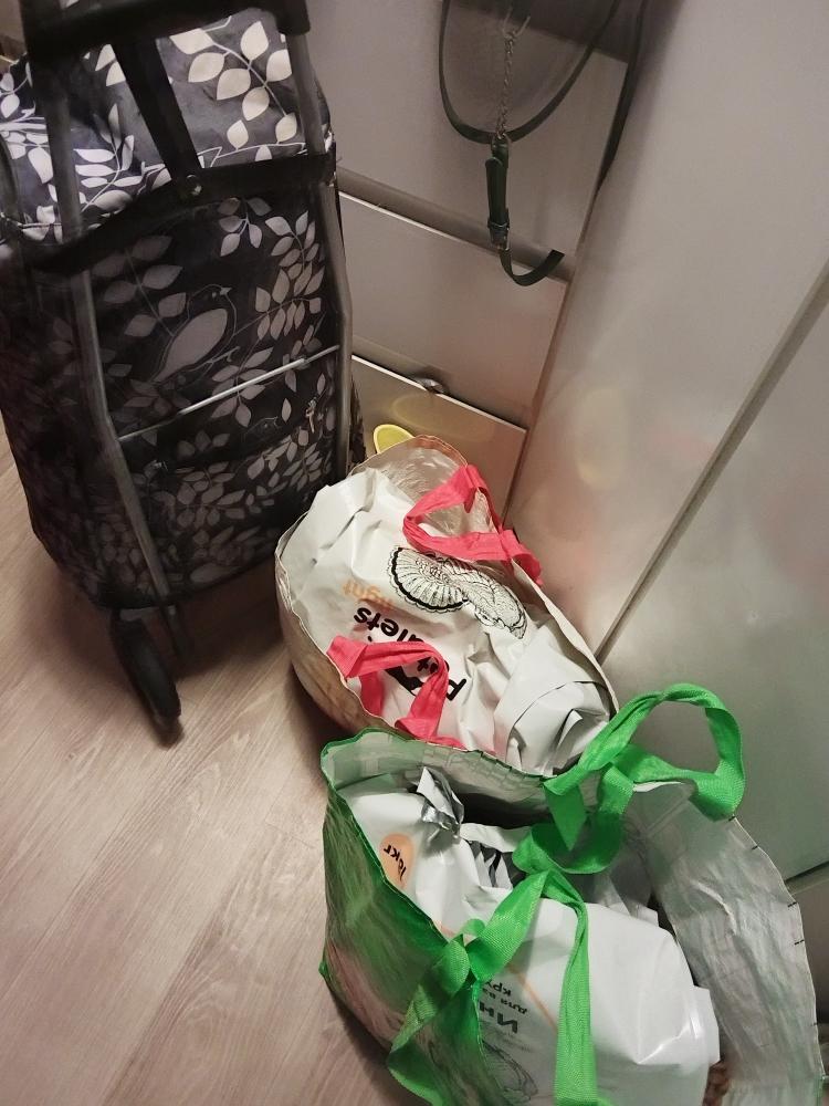 Вот так два мешка я получила и вот так донесла. Спасибо за помощь молодому человеку из воздуха. По другому и не скажешь. Все. Все три мешка у меня дома. Теперь все надо переспать и спрятать от носа Макса.