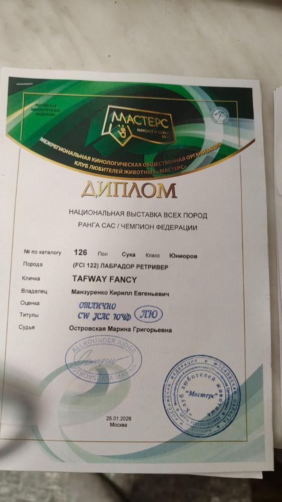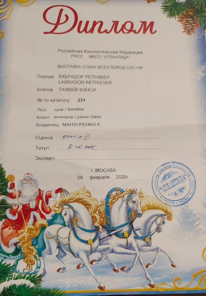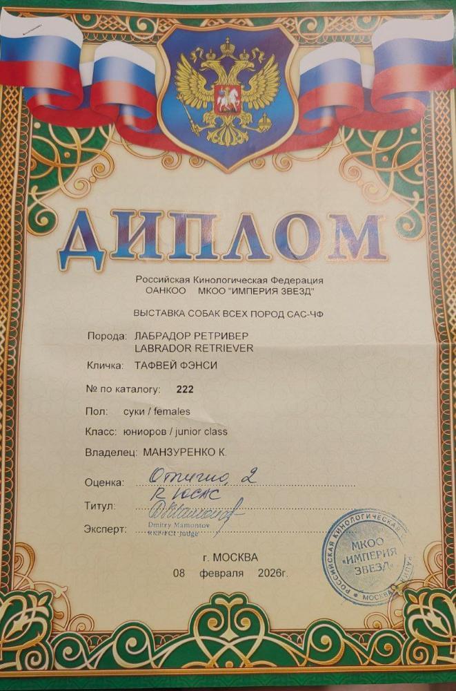 taf82 Опубликовано 7 января, 2025 Автор Опубликовано 7 января, 2025 6 минут назад, Звезда Севера сказал: А ждунчик улетел на праздниках на Камчатку:))). Уверена, будет украшением дальневосточных рингов:))) Спасибо Оля, да наш мальчик уже радует владельцев! 9