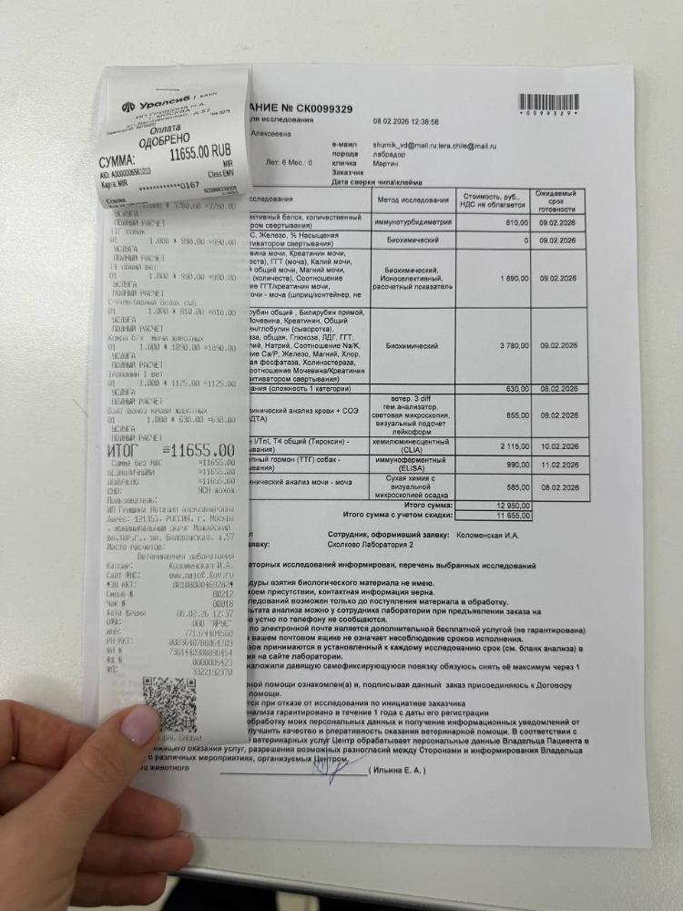 Шумахер Опубликовано 24 января Опубликовано 24 января (изменено) Вот такие траты нам предстоят . Готовимся к МРТ . Посмотрим что скажет кардиолог , ранее ребята пили Ветмедин перед МРТ . Кардиолог стоимость -7900 Дерматолог -4400 Анализы . Биохимия 30 показателей.+клиника + сердечный анализ. -7100 Будем сдавать в шанс био. Итого на обследование нужно 19400. На руках на 24.01.-6523 Остаток к сбору 12877. Реквизиты помощи номер телефона привязан к карте сб на имя Елена Алексеевна И.8968 634 67 79 с пометкой Мотя. Заранее благодарю. С Уважением Шумахер. Изменено 24 января пользователем Шумахер