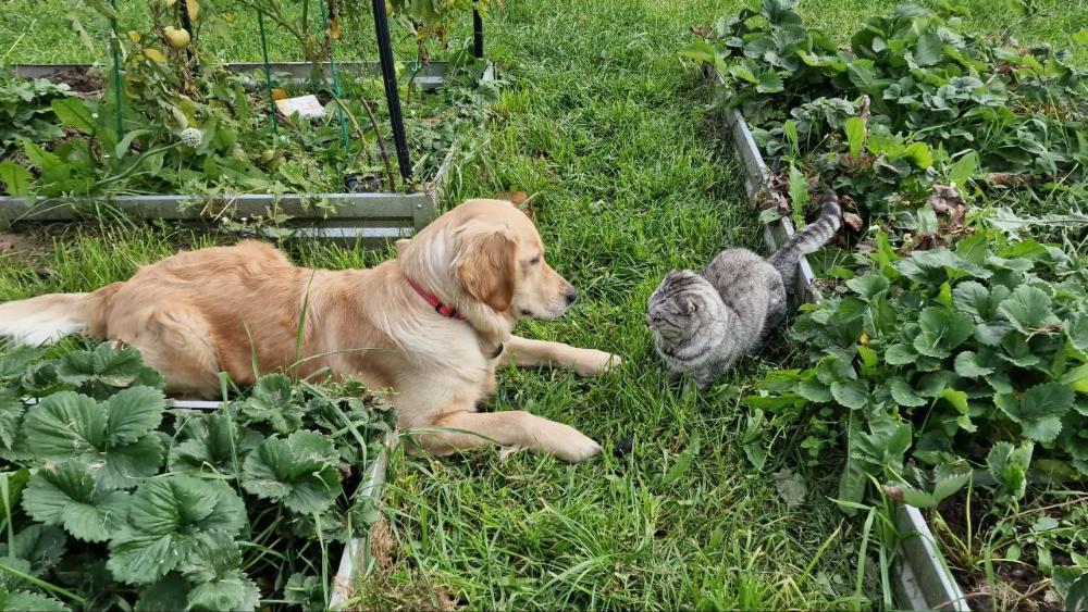 ostorozno Опубликовано 1 час назад Опубликовано 1 час назад (изменено) В 29.09.2025 в 19:52, Mad_Panda сказал: Не помню, писала я или нет, но к нам на дачу приблудилась кошка. Причем поначалу мы подумали, что она мелкая, но скорее всего взрослая и суровая. И мерзко оручая. Хотя кто-то скажет, что она просто разговорчивая. Кошек я не люблю, но мешок корма купила и построила домик на террасе. И вот когда маечка увидела это чудовище, то чудовище страшно зашипело и маечка свалила в закат. Было это еще в начале осени, и вот наконец кошка осознала, что маечка идет в комплекте с едой и домиком. Причем мы правда так и не поняли, то ли она сама по себе гуляет и у нее дом где то есть, то ли нет. Потому что она появляется и исчезает и периодически приходит ейный хахель. Мордатый, но трусливый. И вот неделю назад примерно, кошка сама подошла к майке и потерлась об нее. Я была больная и сидела на солнышке, поэтому вопить и предостерегать сил не было. Маечка, ошалев от такого счастья, тут же начала носиться конем и кошка сделала предупредительное шииии. А сегодня прям как шерочка с машерочкой. У майки явно курс молодого бойца. Ей показали, как залезать в компост и скинули оттуда тухлый помидор. Помидор был пожеван и выплюнут. ЧТо сказала кошка относительно разбазаривания продукта - неизвестно. Потом она повела ее к пакету куда я пихаю несъедобный мусор и вытащили оттуда какашки. Показали майке, та долго нюхала и вопросительно смотрела на кошку. В общем полдня сегодня она ходила за этой кошкой, а та ей что то показывала. Потом в маечке включился двигатель и кошка ( это прям было видно) обреченно вздохнула, села, сделала шиии. Но это не проняло и она сурово подняла лапу. Новый жест маечку озадачил и она плюхнулась перед кошкой, виляя всей маечкой. кошка снова вздохнула. Маечка слушает теоретическую часть) А потом пошла помогать мне собирать малину и тут я на нее наступила. Как мне показалось, прям на всю кошку. Та зашипела, вцепилась мне в галошу, но тут же отцепилась и села рядом. Типа, простите, погорячился. И я поняла, что решение завести полноразмерную собаку было правильным. Иначе я бы ее затоптала. Практически сложившиеся отношения) Я думаю, что вот это как раз в помощь, такая кошь, а не в тягость. Ибо! Она поможет в воспитании. Имхо. Умная, терпеливая кошь. Изменено 1 час назад пользователем ostorozno