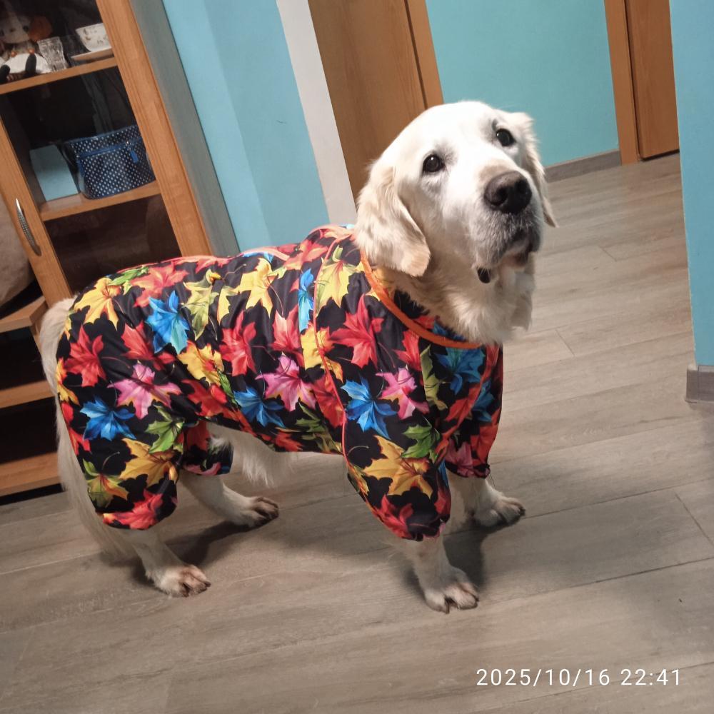Изюм Опубликовано 17 октября Автор Опубликовано 17 октября Эта попонка-дождевик едет в далёкую теплую страну красавчику голдену. Сшили облегчённый вариант нашей тёплой спортивной попоны. 6