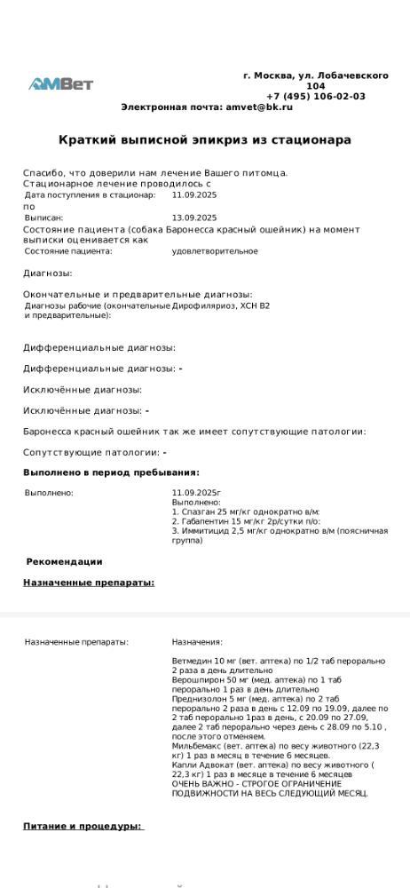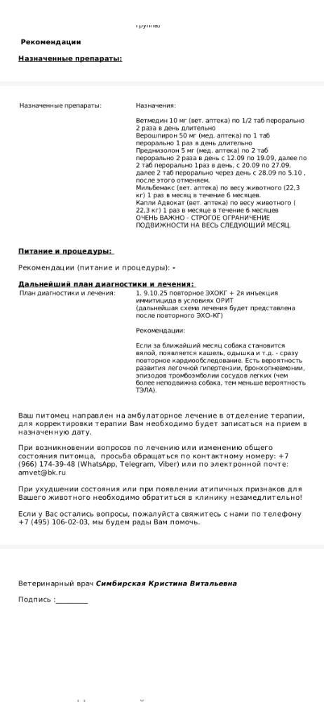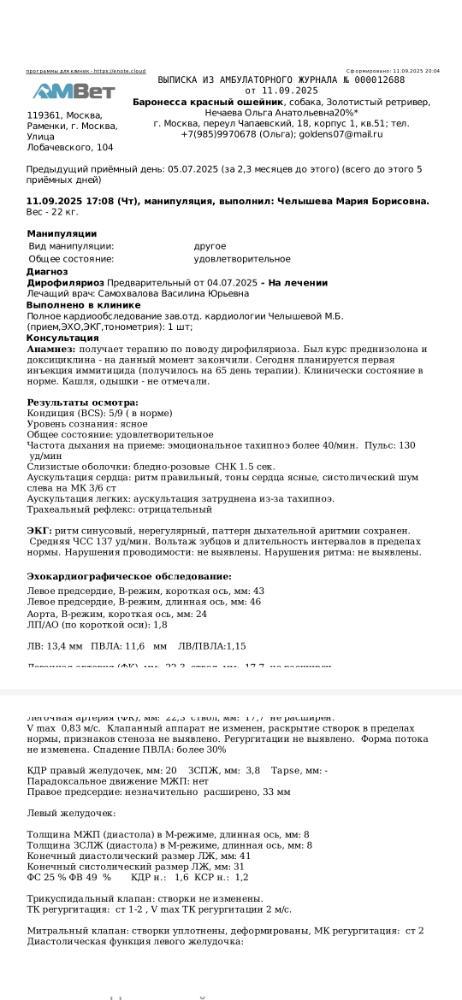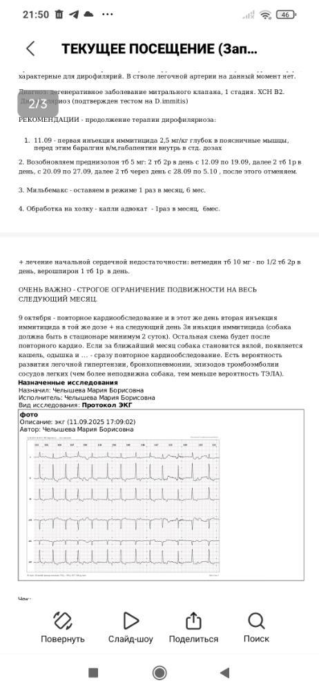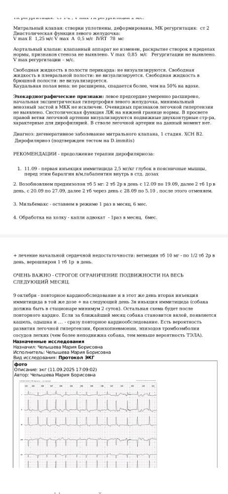 Вячеславовна Опубликовано 16 сентября Автор Опубликовано 16 сентября Добрый вечер от Баронессы💕 Девчушке сделали первый укол иммитицида, под наблюдением кардиолога Баронесса провела сутки в стационаре. Второй укол 9 октября. У Баронессы есть сердечные ухудшения(( Диагнозы: дегенеративное заболевание митрального клапана 1 стадия, ХСН В2, дирофиляриоз. Терапия: Ветмедин на постоянной основе ( на месяц заначка есть, будем очень благодарны помощи) ; Верошпирон Преднизолон Мильбемакс (надо покупать) Капли Адвокат Финансовый отчет. Остаток: 0 Приход: Елена Бела - 8000р. Расходы: Иммитицид - 20000р.( лекарство покупали на двоих с Ольгой Нечаевой, чека нет) Ветклиника ( стационар под наблюдение кардиолога) -17712р. Зоотакси 4500р. Остаток: минус 34212р.😢😢😢 Друзья, Баронессе нужна ваша помощь и поддержка🙏🙏🙏🙏🙏 Меньше чем через месяц, нам надо будет делать второй укол, суммы для нас огромные(((( Не бросайте Баронессу, ей очень хочется жить😍🙏 МОЙ НОМЕР 89261818009 ПРИВЯЗАН К КАРТЕ СБ НА ИМЯ МАРИНА ВЯЧЕСЛАВОВНА М. С ПОМЕТКОЙ " БАРОНЕССА". 2 1