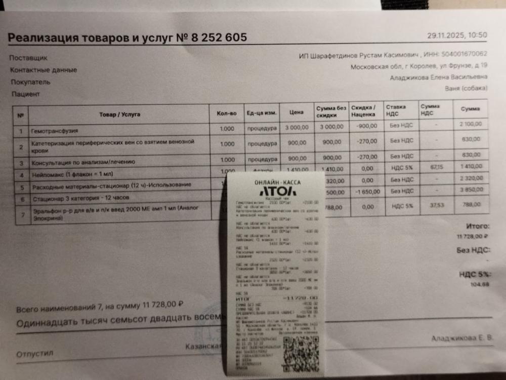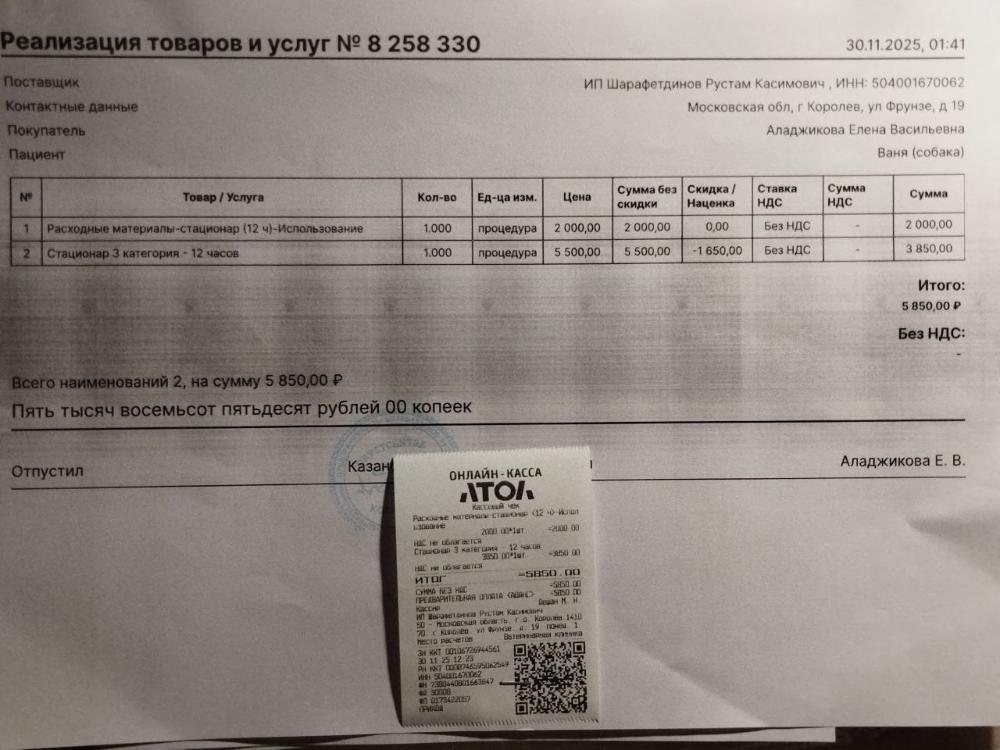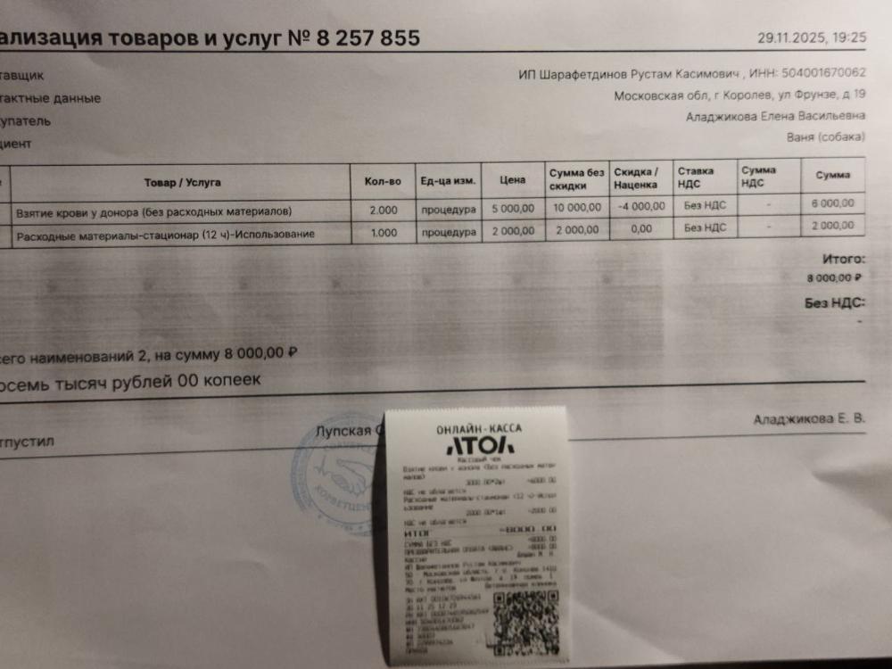 Коробкова Ирина Опубликовано 7 часов назад Опубликовано 7 часов назад 30 минут назад, Ирина Счастливая. сказал: Отчет: Ост: 15200р. Приход: Елена Г-500р. Наталья Э-1000р. Сергей Ч-1000р. Елена С-1000р. Гульнара Н-1500р. Вера Г-1000р. Наталья Е-1000р. Юлия Ж-1000р. Евгения К-1000р. Елена Ч-2000р. Дарья С-1000р. Оксана-А-700р. Наталья Ж-5000р. Анна Ш-1000р. Марина Ф-30000р. Ксения К-1000р. Елена К-500р. Мария Т-3000р. Мария К-800р. Наталья М-1000р. Елизавета С-500р. Оксана А-700р. Анастасия Б-300р. Надежда С-2000р. Лариса П-3000р. Светлана К-1000р. Гульнара Н-800р. Надежда Н-2000р. Олег С-1000р. Расход:(зоотакси донор, клиника)-47824р. Ост: 33676р. С вашего разрешения ,остаток оставим для острых тем Лабродома)🙏 Благодарим всех за поддержку❤️🩹❤️ Будьте добры предоставить отчёт по всем суммам , собранным на него с первого дня в виде таблицы. Дата прихода , сумма и чеки на что потрачено. то что произошло за гранью понимания. Это преступление ( халатность и безответственное отношение в животному) 2