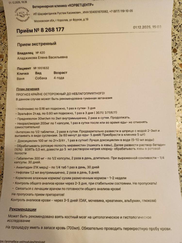 ostorozno Опубликовано вчера в 21:26 Опубликовано вчера в 21:26 58 минут назад, Светлана 2101 сказал: Я напишу подробнее всё позже. Целый день в клинике. Это был шок, мы уже собирались домой, я Сему загрузила в машину, пришла за Ваней, а он совсем не мог идти скрюченный. Лапа начала надуваться на глазах. Позвали хирурга прямо в зал, он осмотрел, сразу на рентген опухшей лапы. Сказал дело не в суставной боли, это неврит. Воспаление нерва. Ваня прямо на столе начал крючиться ещё больше, скулить. Зубы сжаты, врач не могла разжать, сильный болевой синдром, обезболивающие не помогли. Врач хирург посмотрел его карту, анамнез, анализы, и его вот это скрученное состояние, сказал, он не жилец, отпускайте, не мучайте его. В заключении написали- показана гуманная эвтаназия. Он уже сам начал умирать. Моё состояние ужасное, связи с кураторами нет, вообще связь плохая сейчас, не могу дозвониться. Вячеславовна перезвонила, рыдает. Он на моих глазах корчится, не встаёт, так и лежит на столе. Простите, и прости, Ванечка, мы сделали максимум, чтобы ты стал домашним, счастливым. Ему было очень больно. Весь день, а в конце это уже было всё. Я долго на приеме беседовала с врачом, выясняя диагнозы, пути решения, была назначена доп терапия, собирались домой уже, а ему всё хуже и хуже. Я напишу позже подробнее . спасибо, Свет. Такая тяжесть на тебе....береги себя. у тебя дети, всякие. Обнимаю. 3