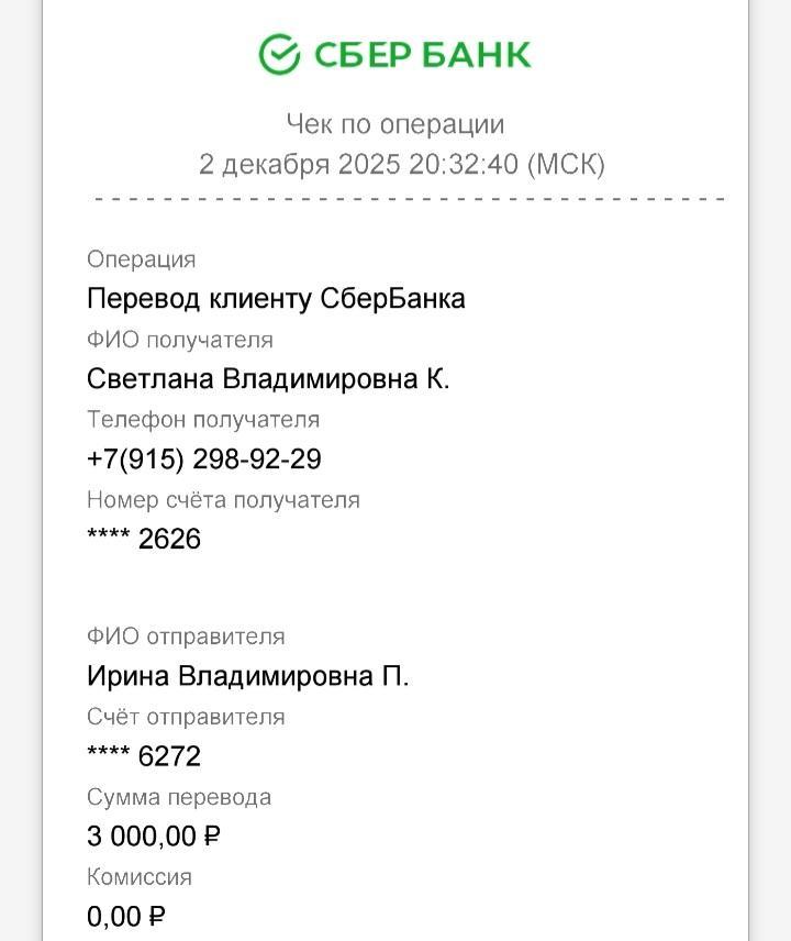 Ирина Счастливая. Опубликовано 5 часов назад Опубликовано 5 часов назад 5 минут назад, Мария Тагиева сказал: Ирина, на мой взгляд сначала стоит спросить людей, которые переводили Вам деньги, как ими в дальнейшем распорядится. Скриншот перевода дублирую. 3000 руб. от Фонда "ПОМОЖЕМ ВМЕСТЕ" переведите в тему Сёмы. Чек, подтверждающий перевод, прошу выложить в теме Фонда